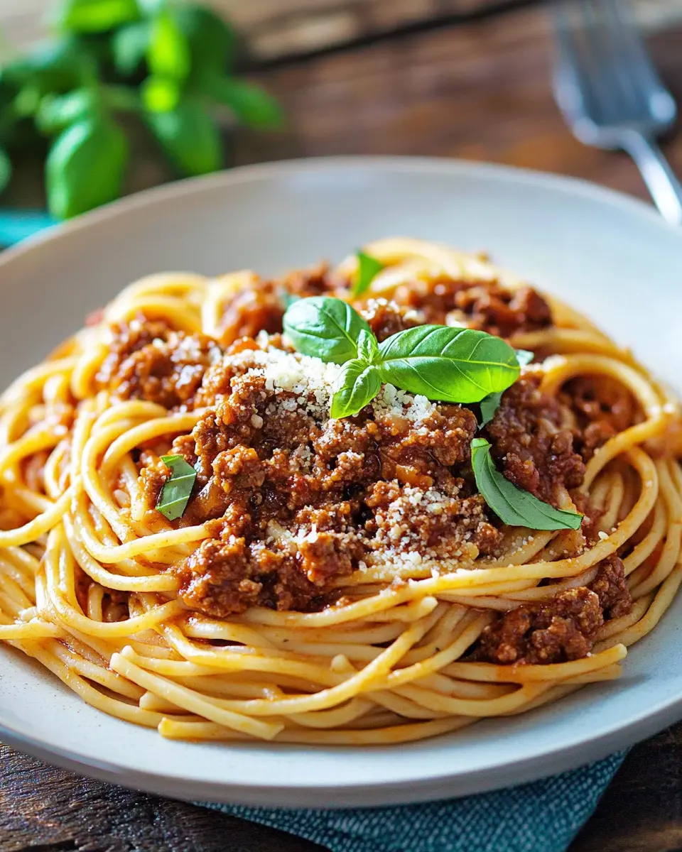 As the sauce simmers, it thickens and deepens in flavor, allowing the ingredients to meld beautifully. It’s a dish that speaks to the art of cooking, reminding us that good food takes time, but the results are always worth it. So, whether you’re cooking for yourself or hosting friends, this Beef Bolognese with Linguine is sure to impress, making it a staple in your culinary repertoire. Enjoy every bite, and don’t forget to sprinkle some freshly grated Parmesan cheese on top for that finishing touch!