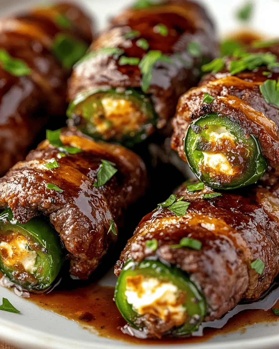 When serving, arrange the jalapeños on a large platter with toothpicks for easy picking. Garnish with fresh herbs like cilantro or parsley for a pop of color. Don’t forget to offer a variety of sauces to enhance the experience—your guests will appreciate the extra touch. Whether enjoyed as an appetizer or a main dish, these beef-wrapped cream cheese jalapeños are destined to be the star of the show!