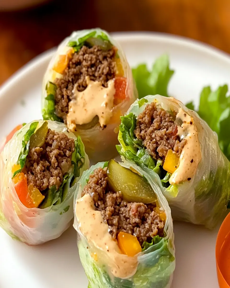 These Big Mac-Inspired Rice Paper Rolls are a fun and fresh take on the classic burger, wrapped in rice paper for a delicious and unique appetizer or light meal.