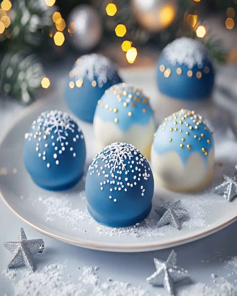 The blue sprinkles not only enhance the visual appeal of the truffles but also add a fun crunch. They are the finishing touch that makes these truffles festive and perfect for holiday celebrations.