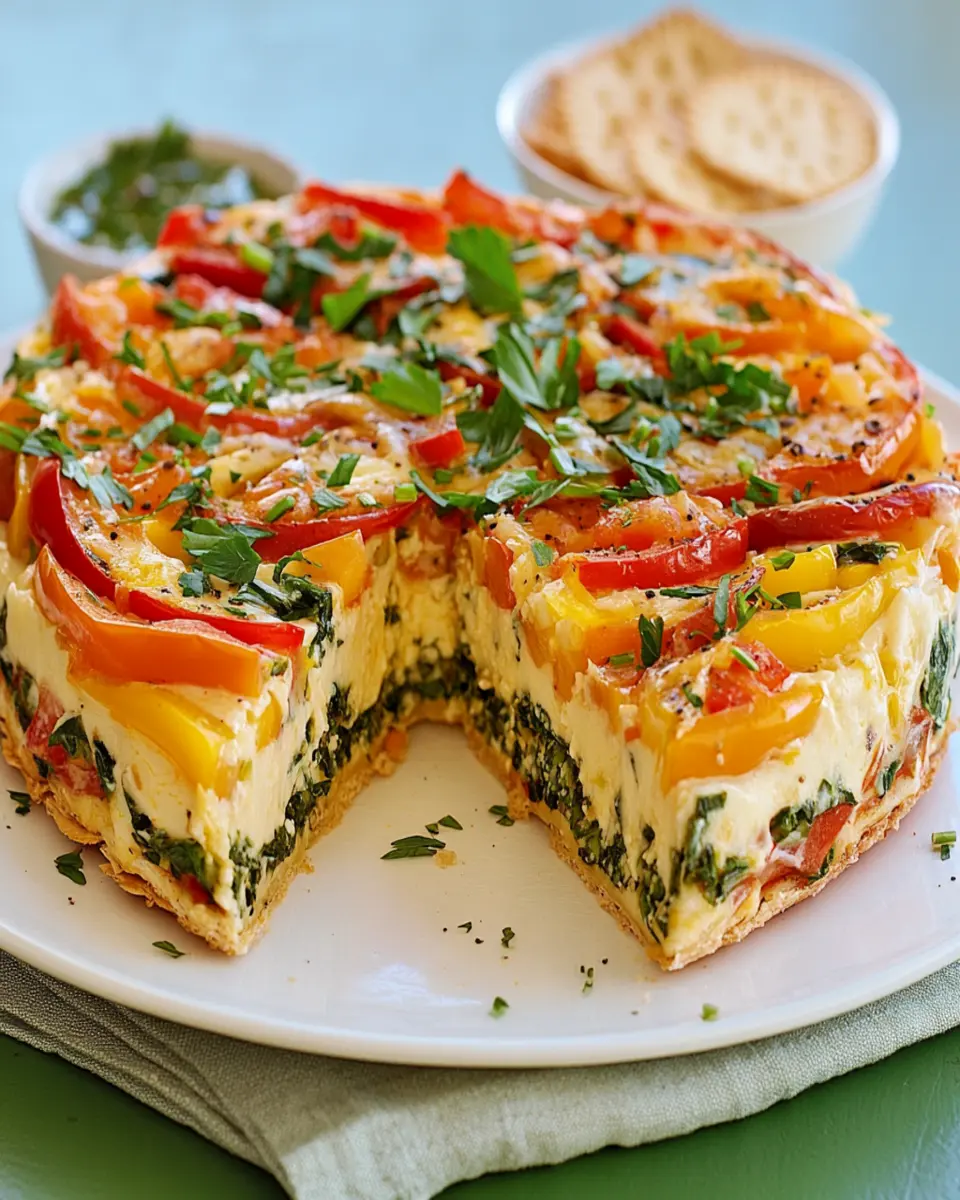 In summary, the Cheddar-Veggie Appetizer Torte is a delightful and versatile dish that perfectly balances flavors and textures, making it ideal for any gathering. With its creamy cheese filling and colorful vegetables, this torte not only pleases the palate but also adds a vibrant touch to your table. Whether served warm or chilled, it’s sure to impress your guests and become a go-to recipe for future events. Don’t hesitate—try making this delicious torte today and enjoy the compliments that follow!