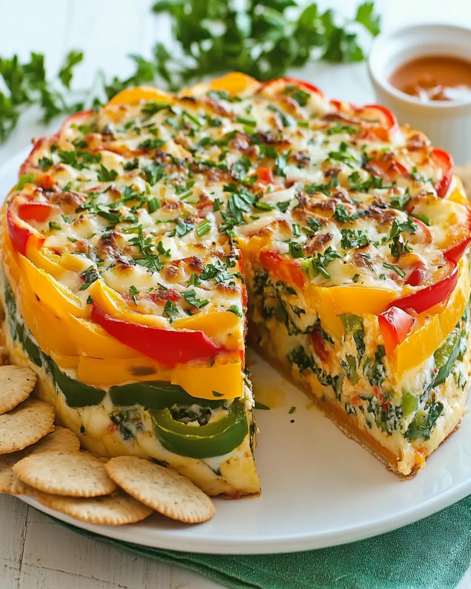 This torte is the ultimate party appetizer, bringing a pop of color to your table and tantalizing the taste buds of your guests. Whether served warm or chilled, its savory flavors and creamy texture make it a must-have for gatherings, making you the star of the event.