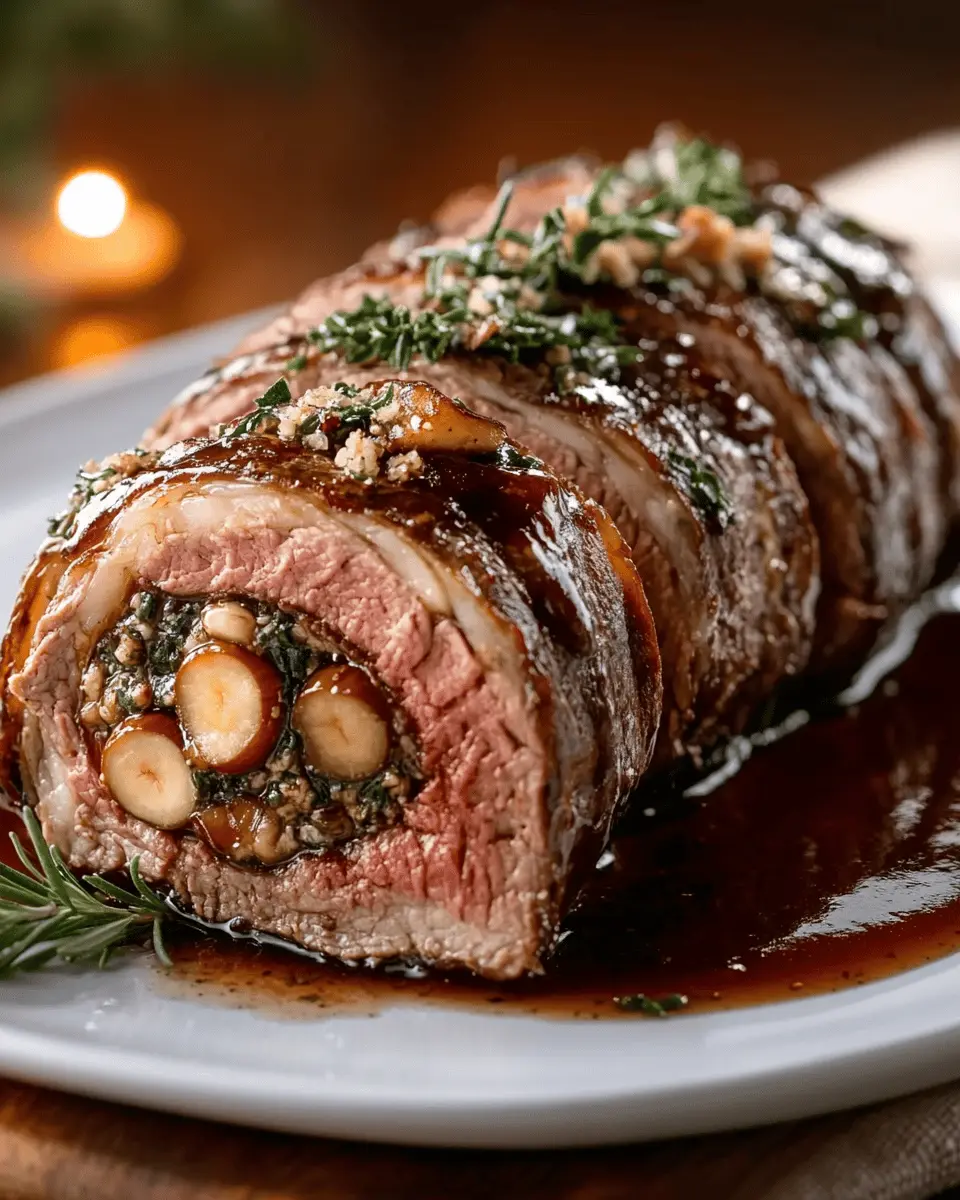 In conclusion, the Chestnut-Stuffed Roast Beef Roll is more than just a meal; it’s a delightful centerpiece for any festive gathering. With its rich flavors and impressive presentation, this dish is sure to be a hit among family and friends. The combination of tender beef and savory chestnut stuffing creates a warm, inviting experience that captures the essence of holiday cooking.