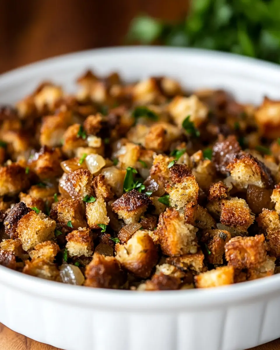 For a crispy top, you can uncover the dish during the last 10 minutes of baking. This will give you that golden-brown finish that makes stuffing so appealing. Additionally, if you find the stuffing too dry, a splash of vegetable broth can help retain moisture.