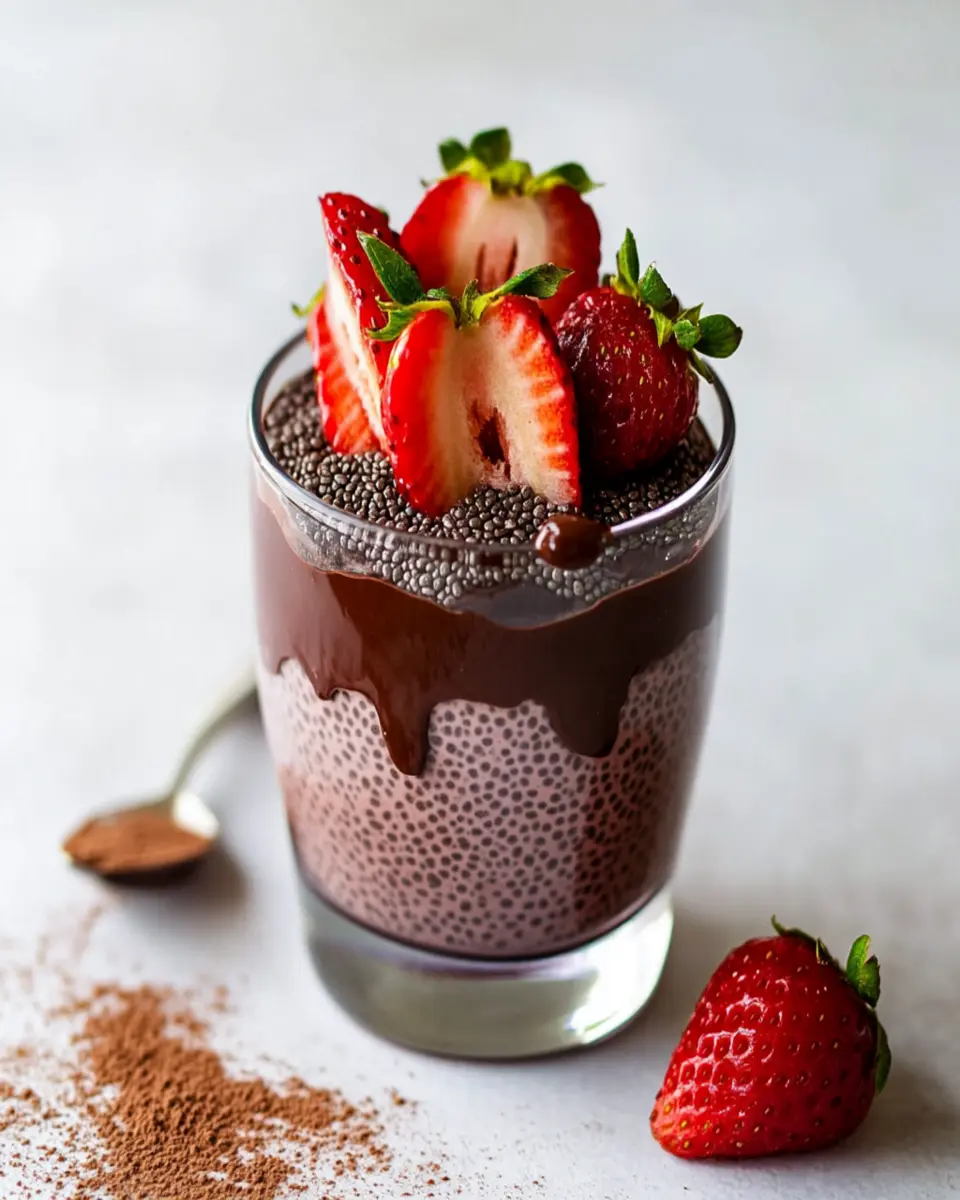 The use of chia seeds not only adds a fun texture but also packs a nutritional punch, providing essential omega-3 fatty acids and fiber. This makes the pudding not only delicious but also a nourishing choice for your body. Plus, the almond milk and maple syrup create a creamy, naturally sweet base that complements the chocolate and strawberries beautifully.