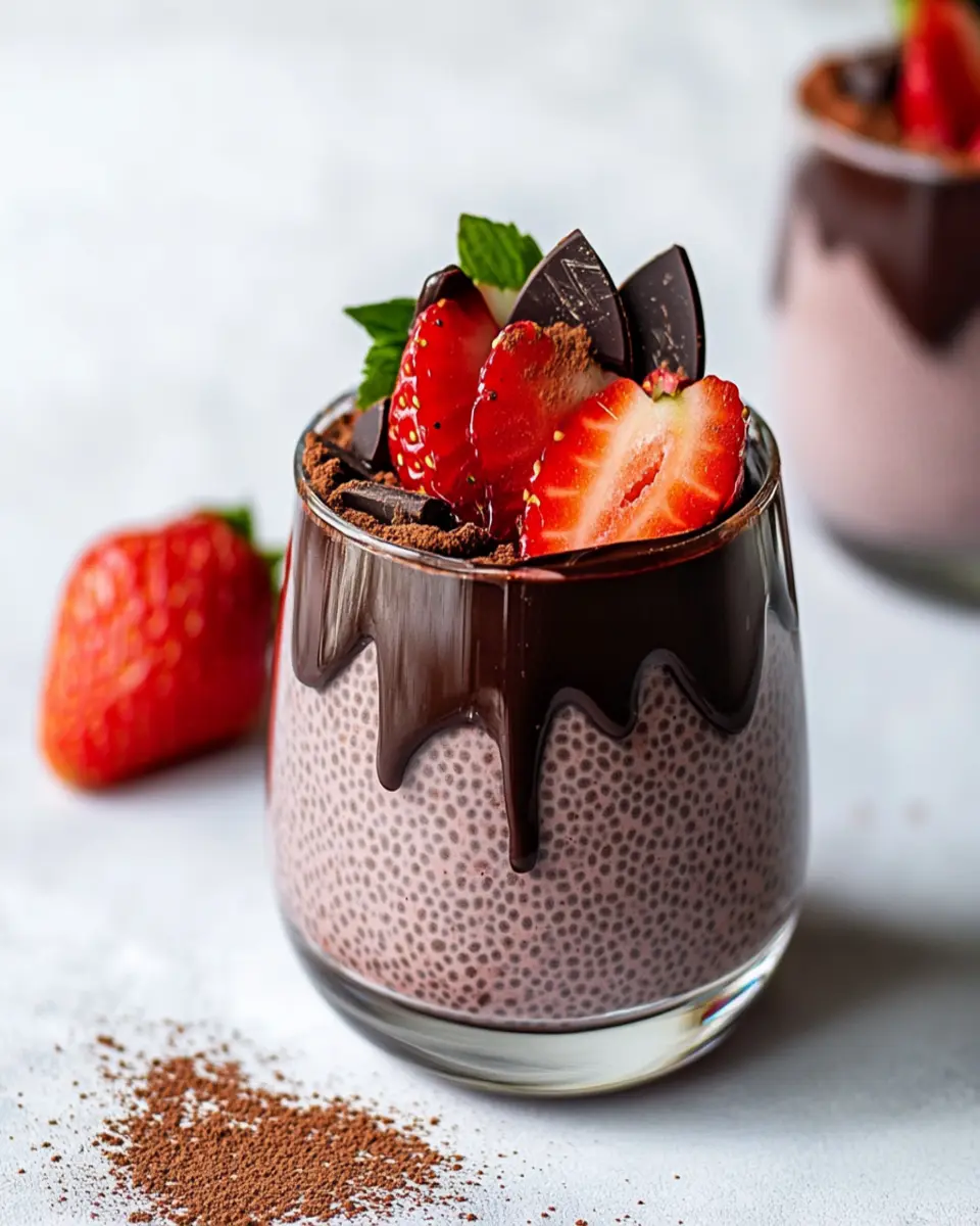 Chia seeds, the star of this recipe, are known for their incredible health benefits. Packed with fiber, protein, and omega-3 fatty acids, they not only help you feel full but also support digestive health. When soaked in almond milk, these tiny seeds transform into a rich, pudding-like consistency that serves as the perfect base for our chocolate and strawberry toppings. This dessert not only pleases the palate but also aligns with health-conscious eating habits.