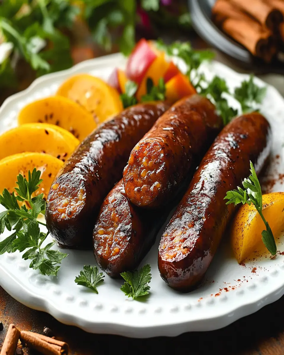 Serving this sausage alongside a sweet condiment like applesauce is a classic choice that balances the savory elements of the dish. The sweetness of the applesauce complements the warm spices, creating a harmonious flavor experience. You might also consider serving it with a tangy mustard or a spicy chutney for an added kick.