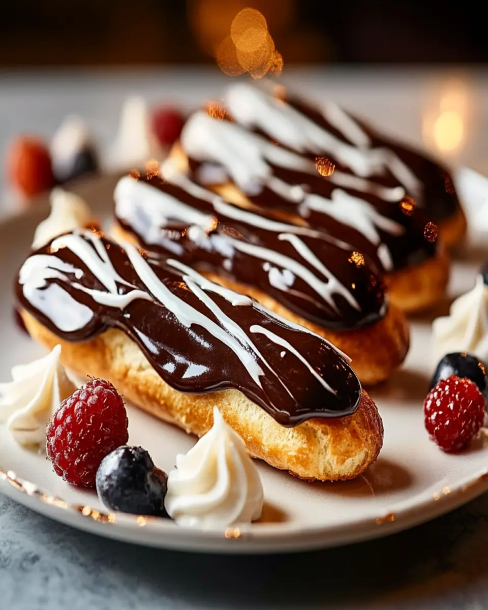 What makes these éclairs so special? The combination of airy choux pastry, rich custard filling, and decadent chocolate glaze creates a symphony of flavors and textures. They are perfect for impressing guests, celebrating special occasions, or simply treating yourself after a long day. Imagine serving these elegant pastries at your next gathering—your friends will be amazed!
