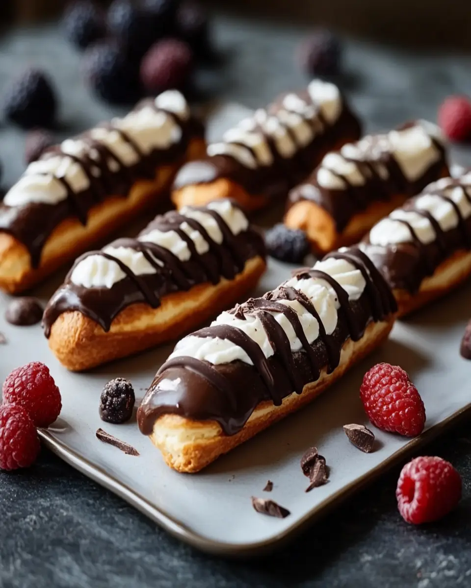 For a stunning presentation, arrange the éclairs on a beautiful platter and dust them with powdered sugar or cocoa powder. You can also drizzle some extra chocolate sauce over the top for an eye-catching effect. Adding a sprig of mint can provide a pop of color and freshness, making your dessert look as good as it tastes.