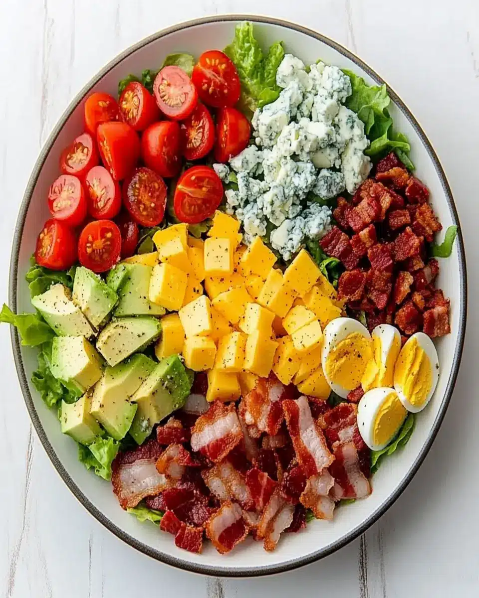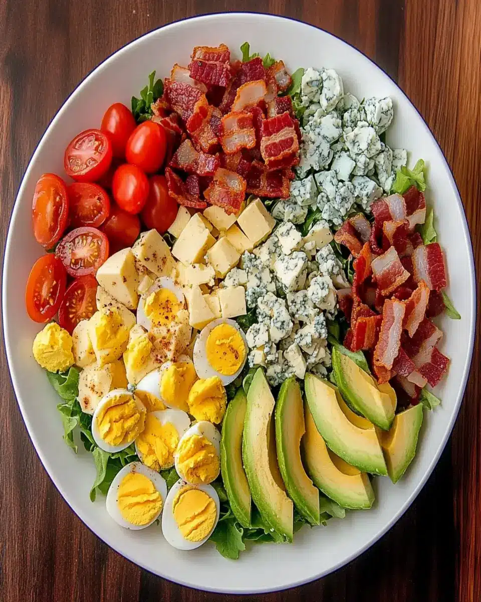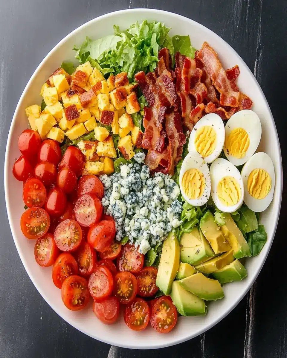 In just 30 minutes, you can prepare a dish that is both satisfying and aesthetically pleasing. The vibrant colors and appealing textures make it a feast for the eyes as well as the palate. Plus, with a quick prep time and simple ingredients, it’s perfect for those busy days when you still want to eat healthily. Enjoy this classic Cobb salad for a meal that’s as delicious as it is nutritious!