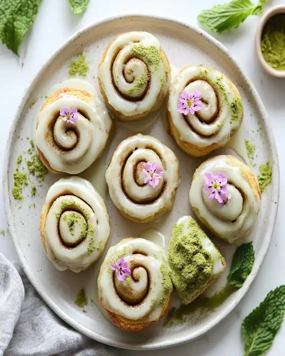 You can also add a fresh fruit salad on the side, featuring seasonal fruits like berries or citrus, to introduce a refreshing contrast to the rich cinnamon and matcha flavors. A light dusting of powdered sugar over the rolls can elevate their presentation, making them look even more inviting on your brunch table.