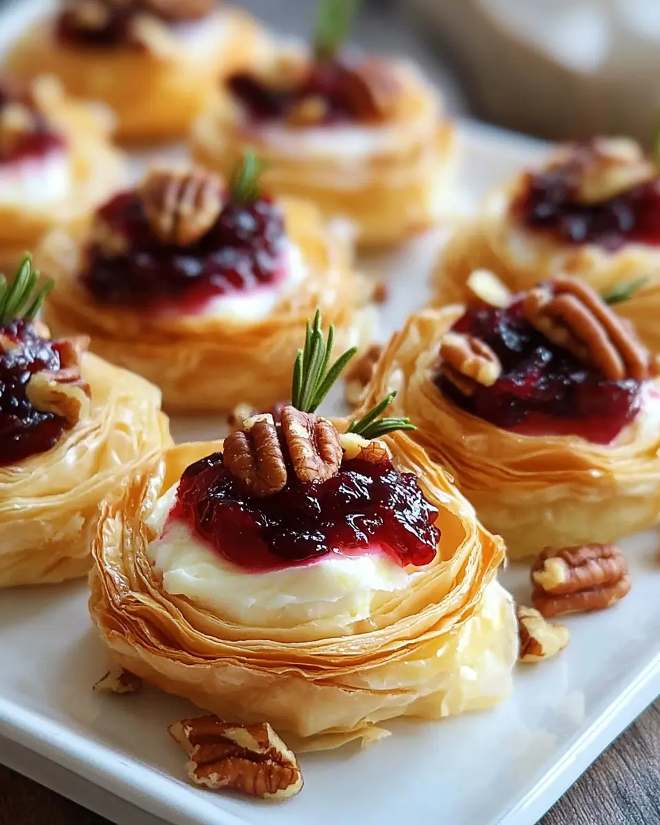 One of the best aspects of this recipe is its simplicity. With just a handful of ingredients and straightforward steps, you can create a gourmet-looking dish that tastes as good as it looks. The combination of textures—from the crispy phyllo to the chewy cranberries—ensures that each bite is satisfying.