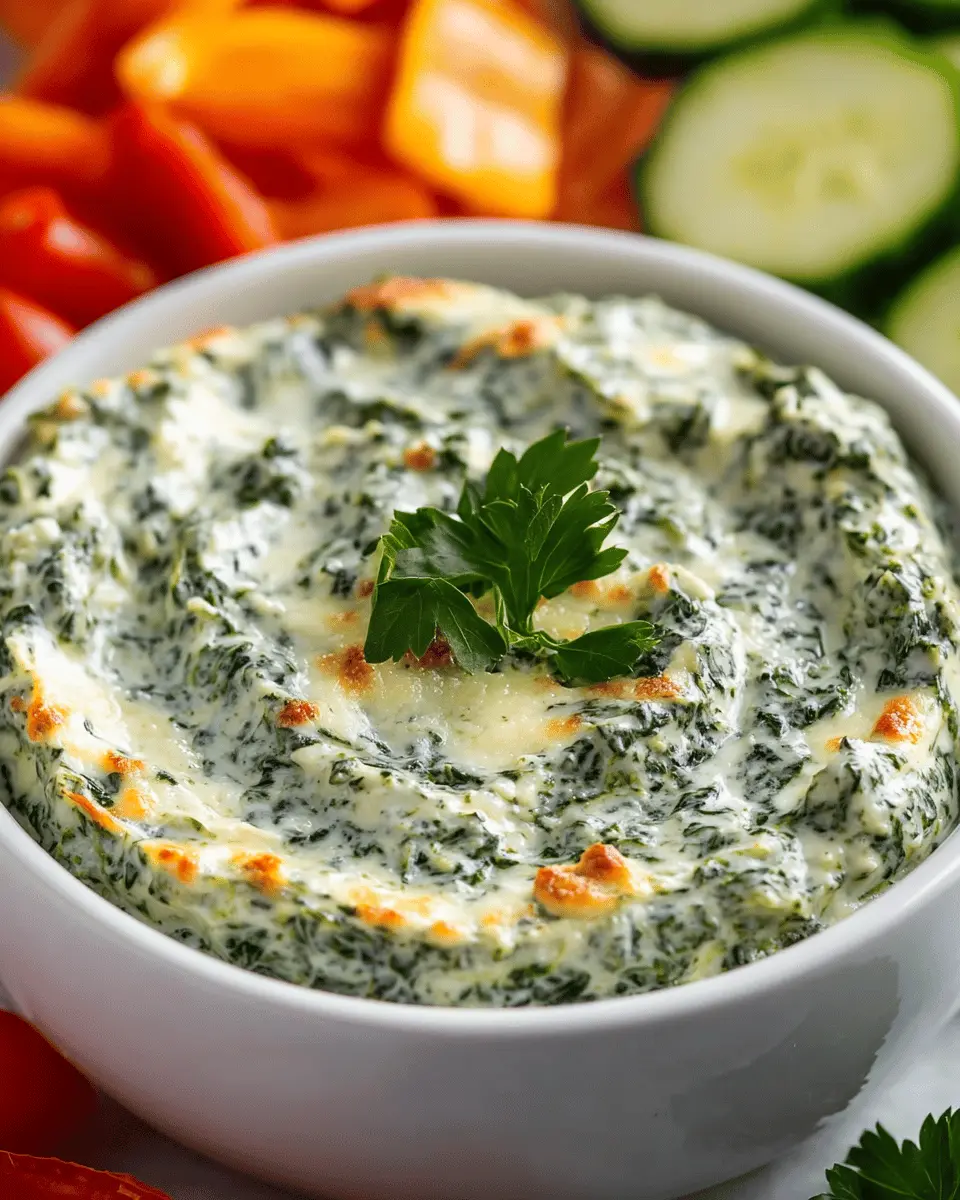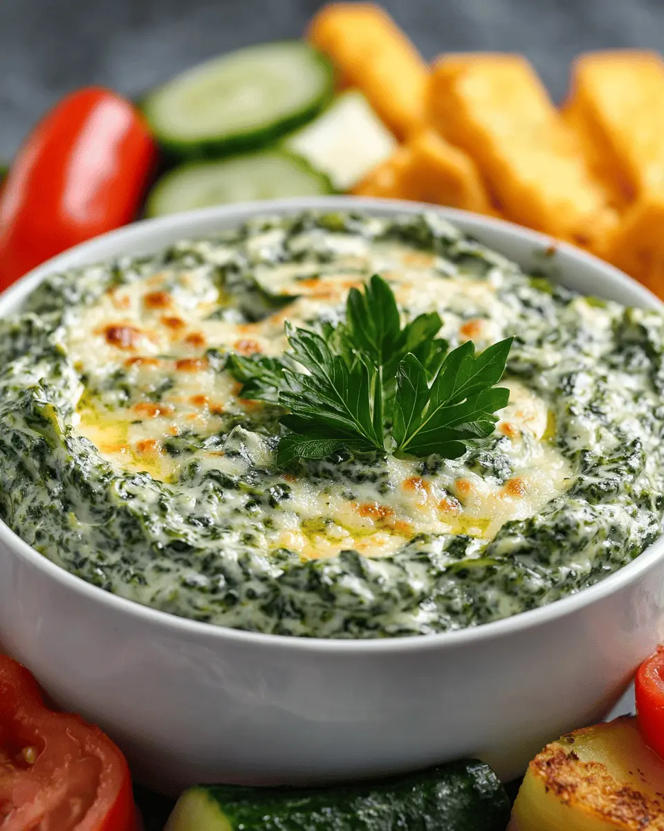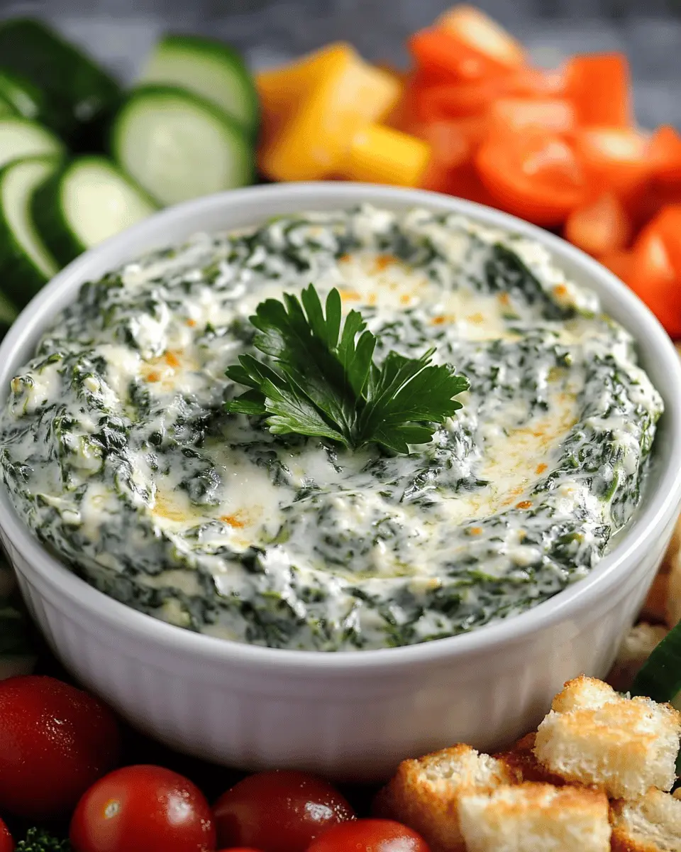 A deliciously creamy dip made with spinach, cream cheese, and Parmesan cheese, perfect for parties and gatherings.