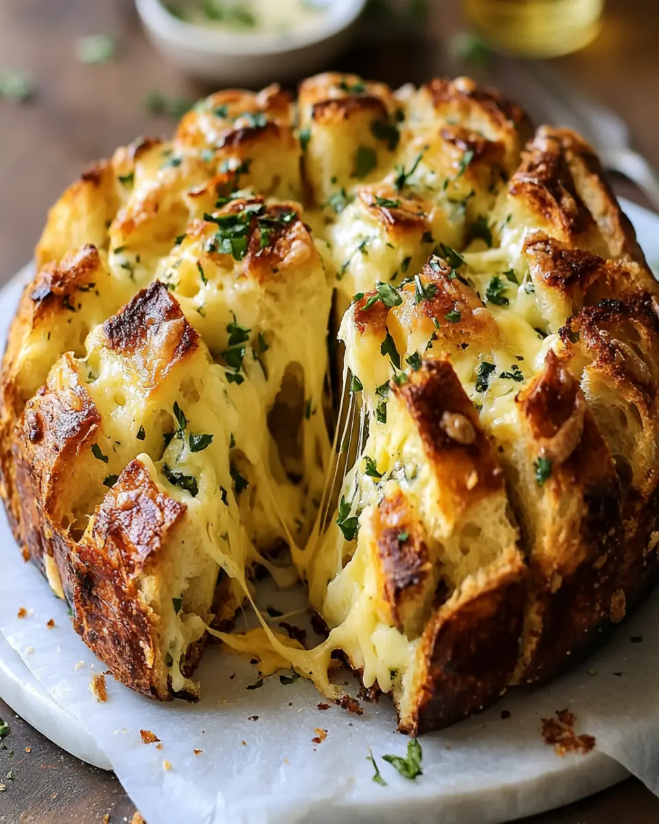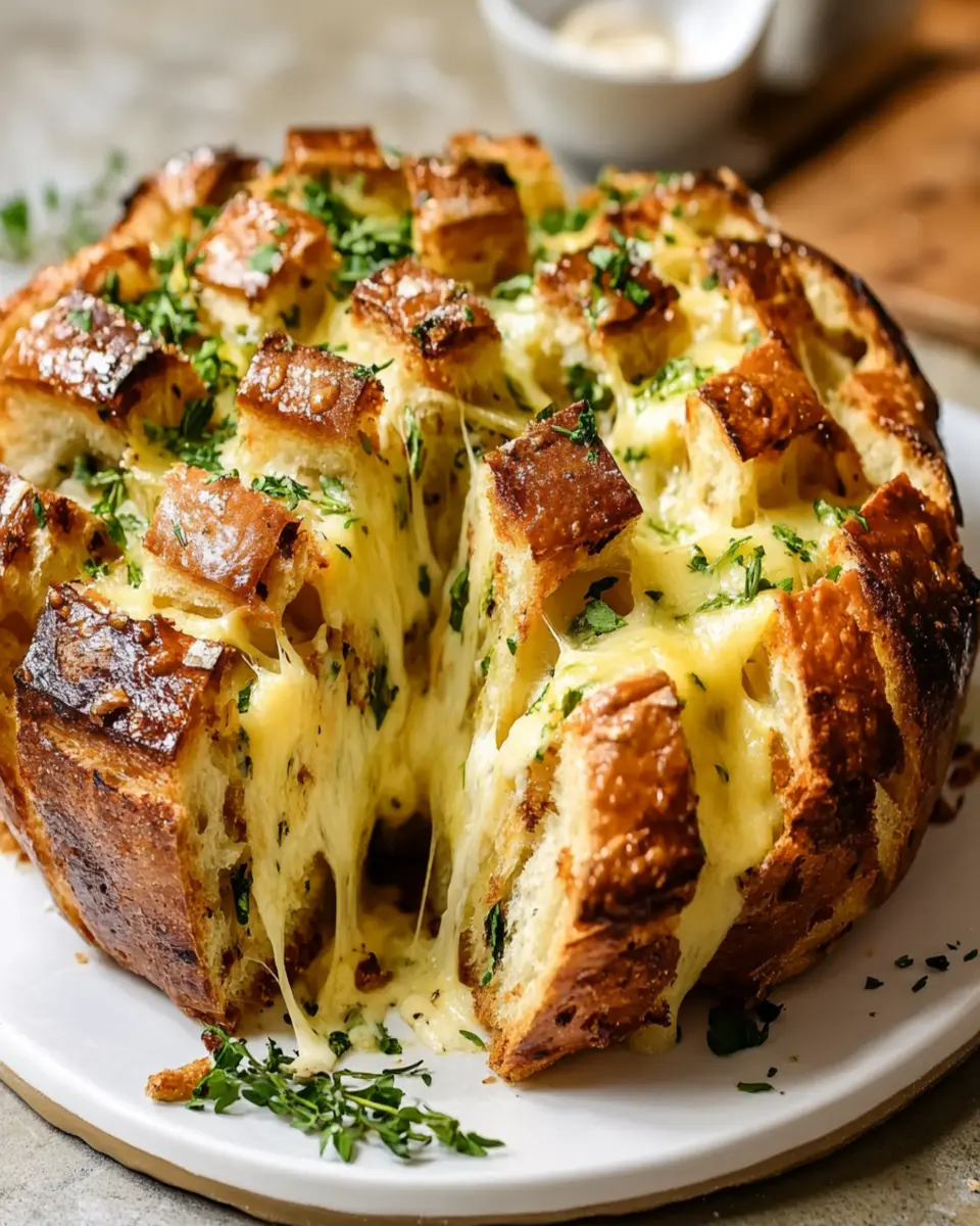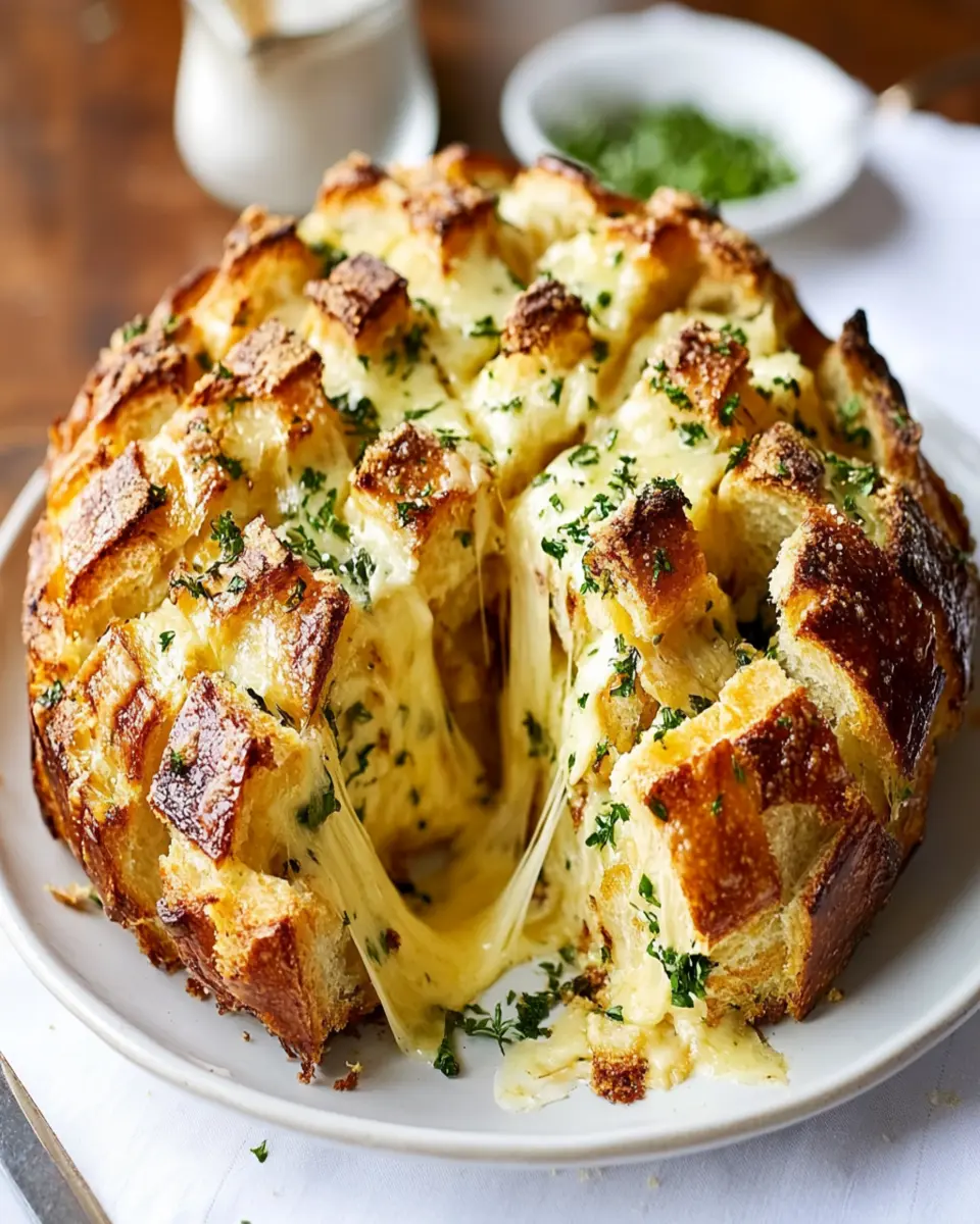 In conclusion, the Easy Cheese and Roasted Garlic Pull-Apart Bread is not just a dish; it’s an experience that brings people together. With its rich flavors of roasted garlic and melted cheese, it’s sure to impress at any gathering or cozy night in. This recipe is designed for young professionals and homemade-food lovers, making it both simple and satisfying.