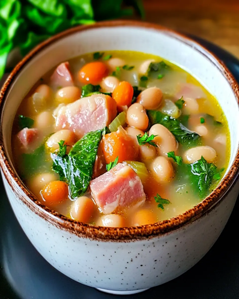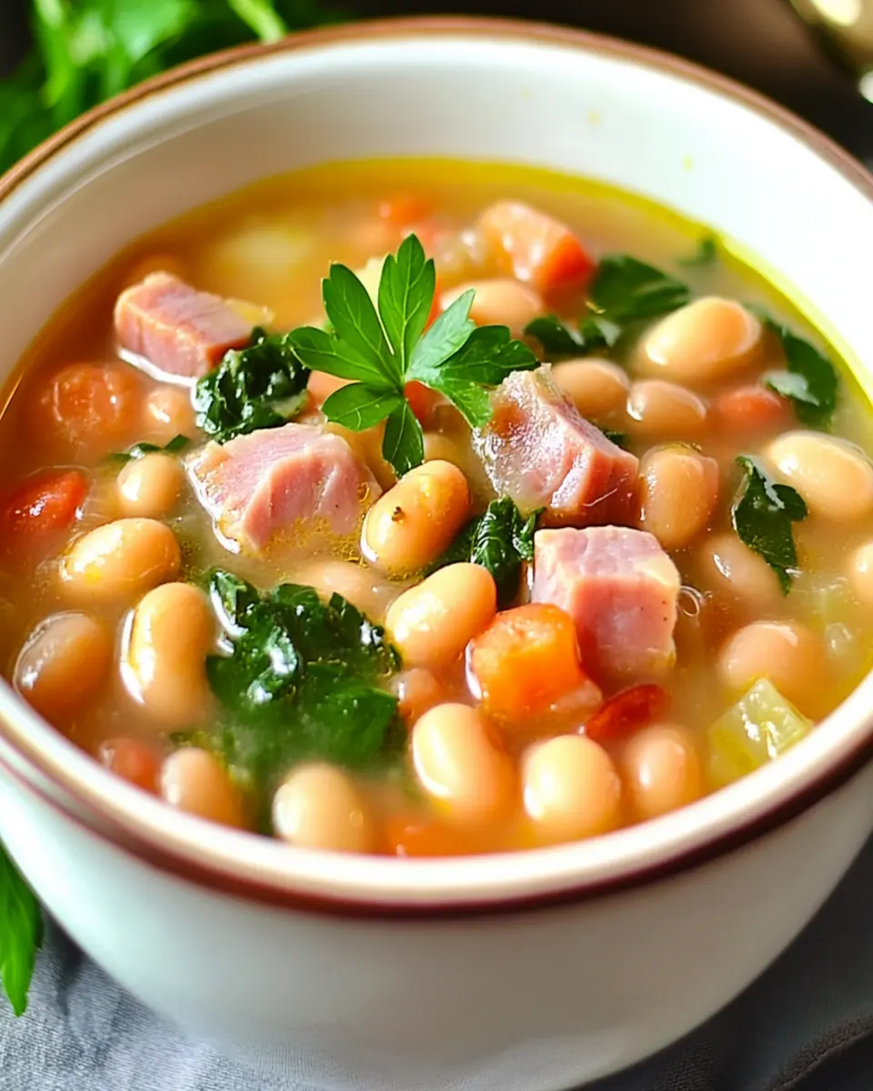 Each serving of this Easy Ham and Bean Soup is not only hearty but also packed with essential nutrients, making it a balanced meal option. With 320 calories per serving, it’s a satisfying choice for a cozy dinner without being overly indulgent.