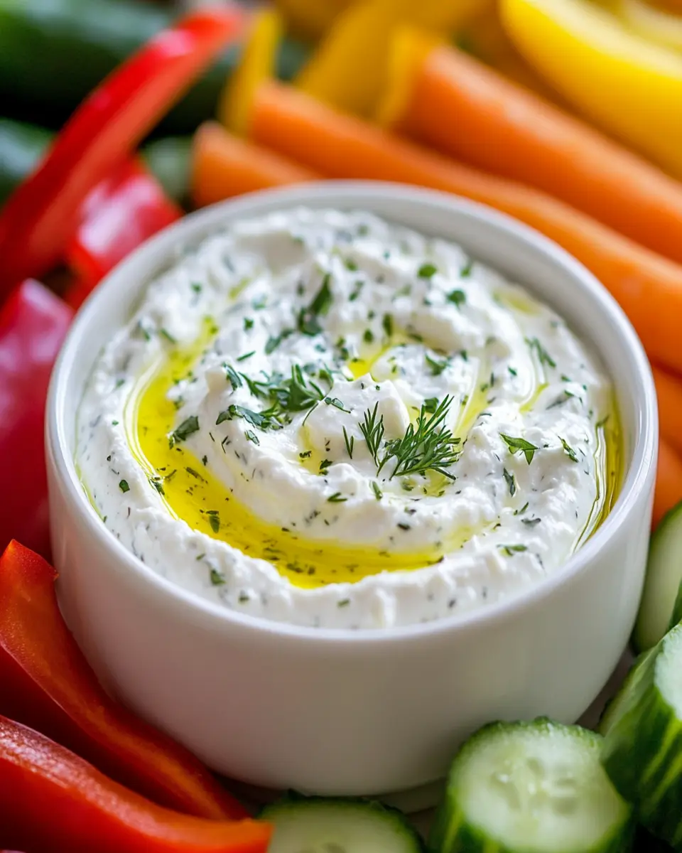 For a more Mediterranean spread, consider serving the dip alongside olives, roasted red peppers, or marinated artichoke hearts. These additions not only enhance the flavor profile but also create a visually appealing platter that will impress your guests. Adding a sprinkle of extra herbs or a drizzle of olive oil on top can provide that finishing touch, making your serving truly stand out.