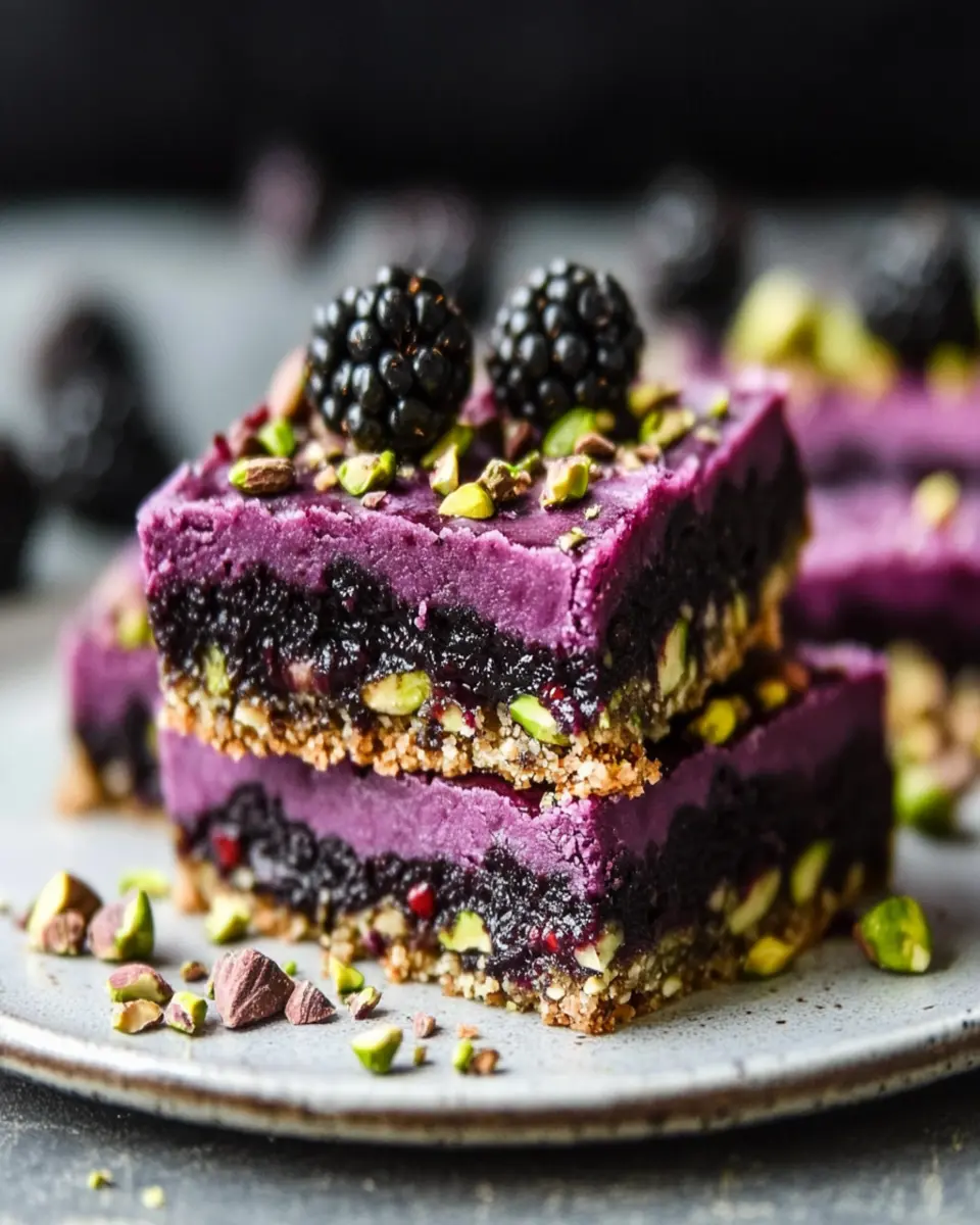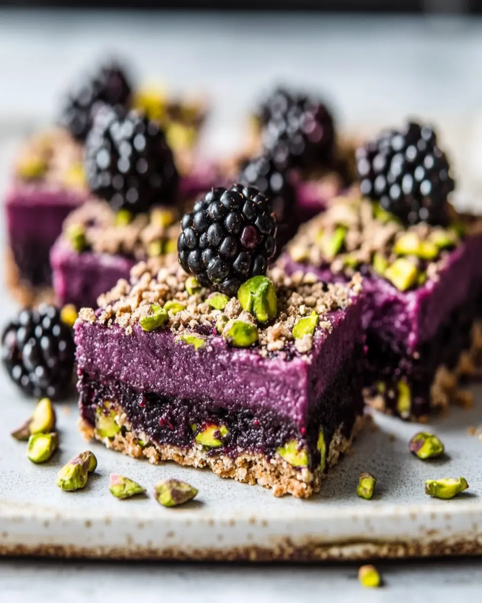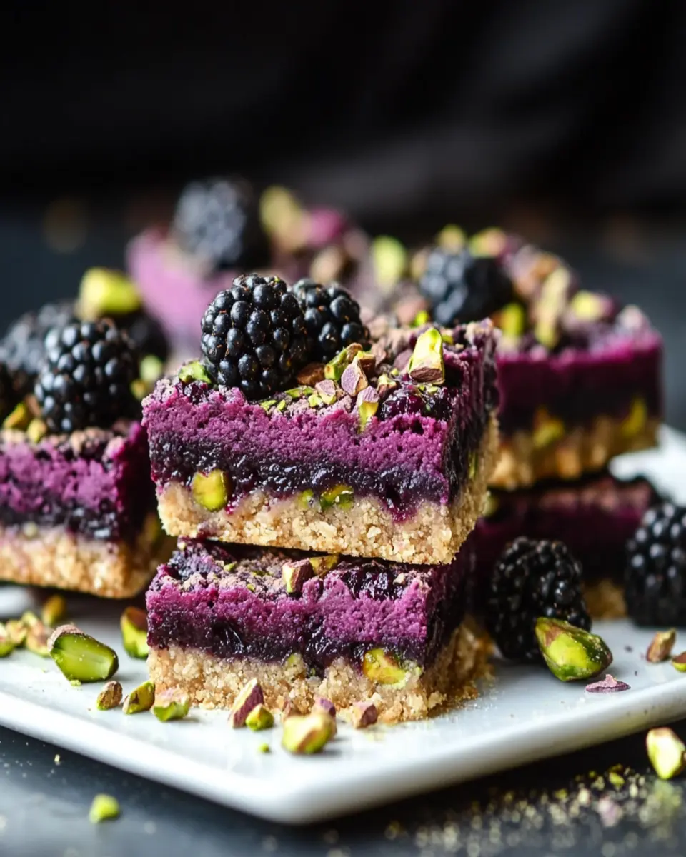 For a refreshing touch, serve the bars alongside a side of fresh berries or a fruit salad. This adds brightness and enhances the overall experience, making it a perfect dessert for gatherings or family dinners. If you want to impress your guests, drizzle a little melted dark chocolate over the bars before serving. This rich addition contrasts nicely with the tartness of the blackberries and the crunch of the pistachios.