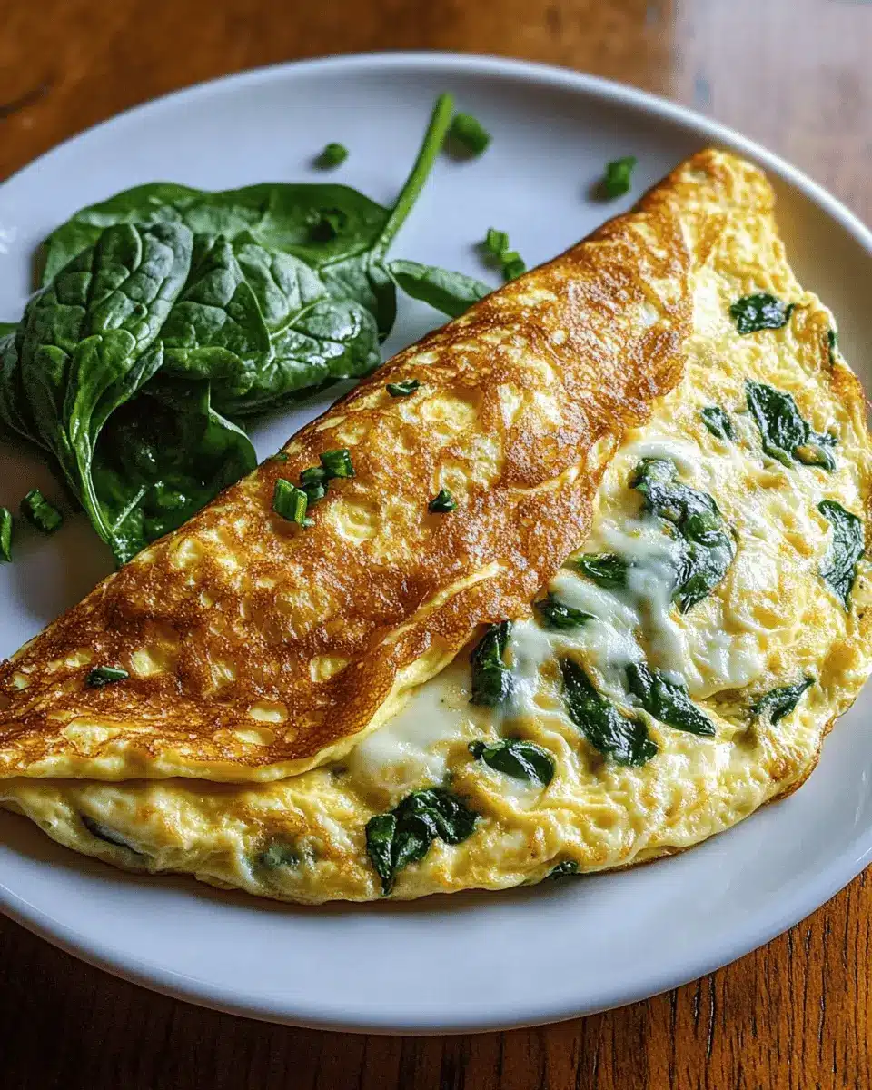 Fluffy Cheese Omelet: Indulgent Spinach Delight at Home