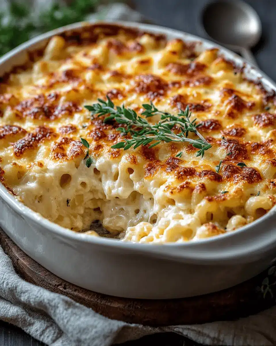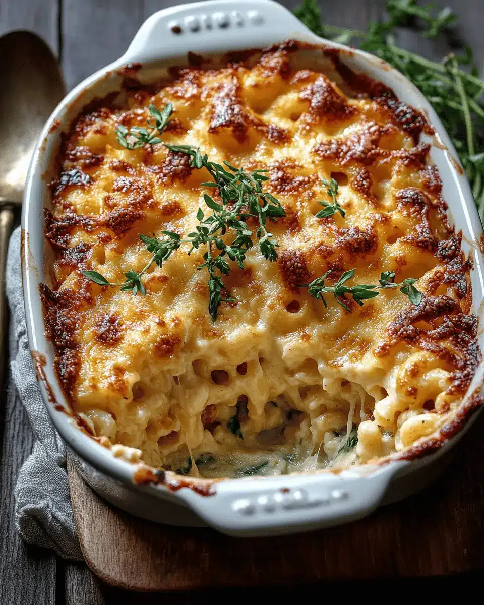 The Four-Cheese Baked Macaroni Gratin is the ultimate comfort food, combining creamy textures and rich flavors that make it a favorite for cheese lovers. This indulgent dish is perfect for family dinners or cozy nights in, featuring a delightful blend of cheddar, mozzarella, blue cheese, and Parmesan that elevates a simple macaroni dish to something truly special.