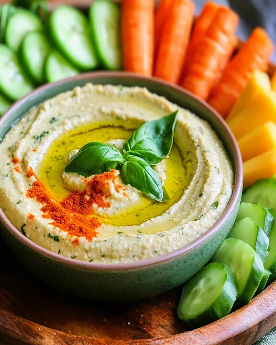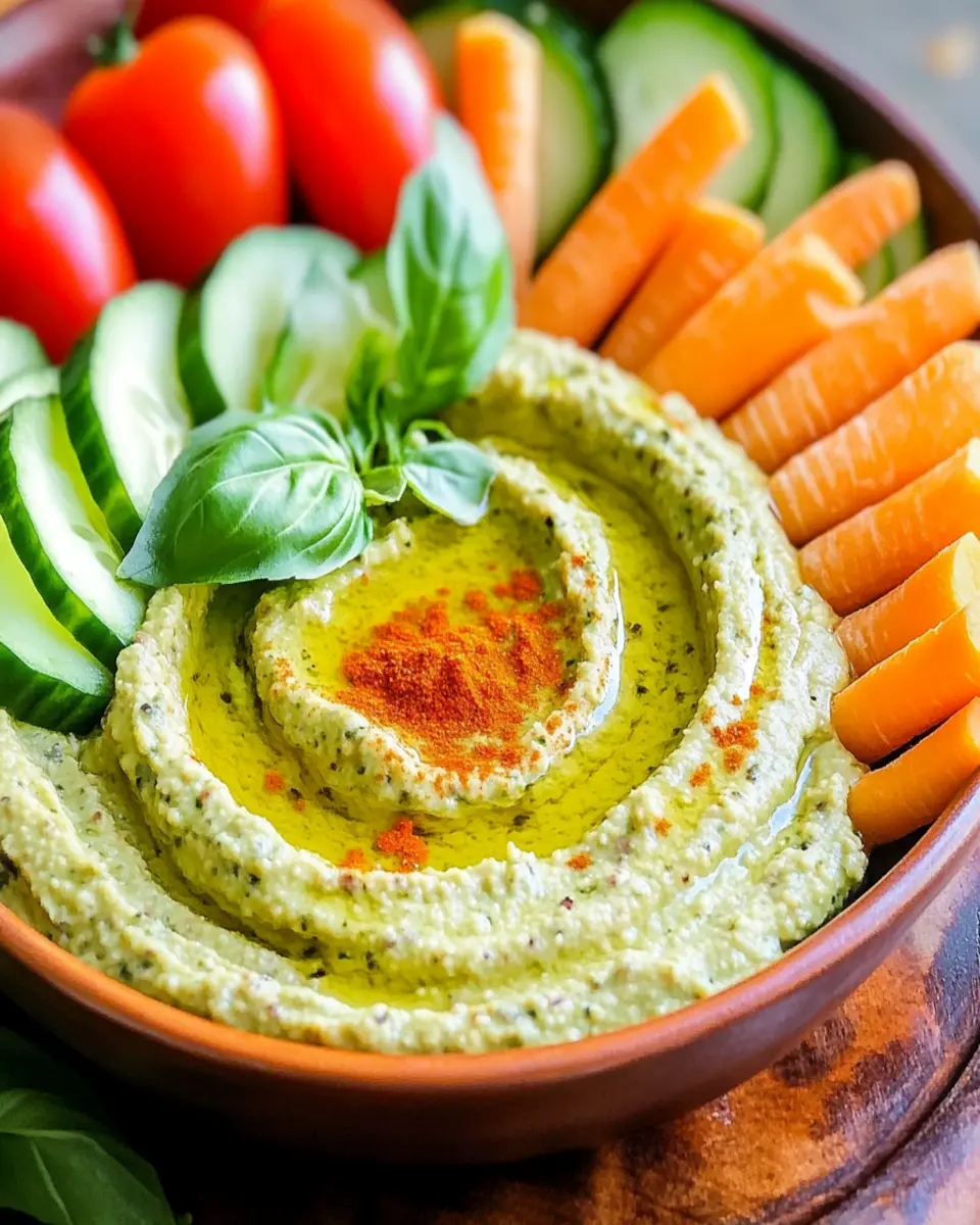 For a more indulgent option, serve your Fresh Summer Basil Hummus with warm pita chips or toasted baguette slices. The warm, crispy texture of the pita enhances the smoothness of the hummus, creating a delightful eating experience. You can even brush the pita with olive oil and a sprinkle of salt before toasting for added flavor.