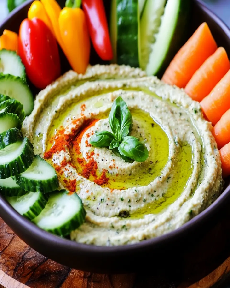 Fresh Summer Basil Hummus is not only delightful on its own but also pairs beautifully with a variety of accompaniments, making it an ideal choice for entertaining or casual snacking.