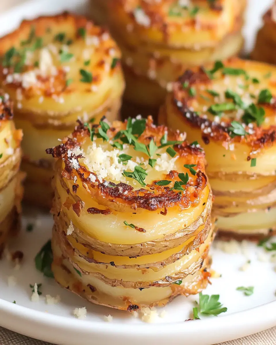Garlic Potato Stacks: Irresistibly Cheesy and Crispy Goodness