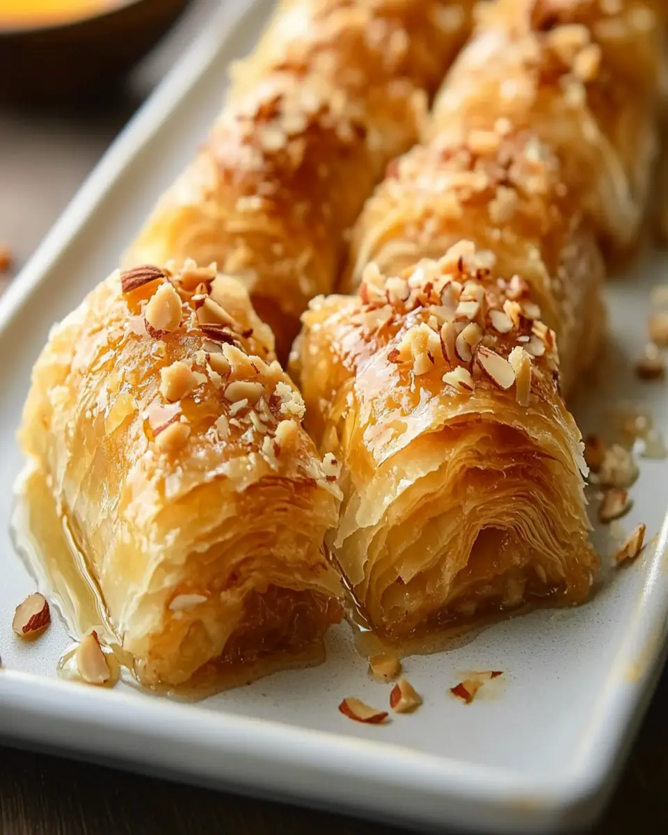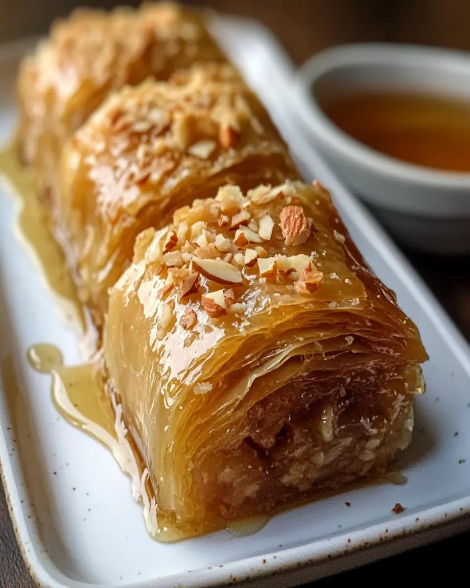 Imagine biting into a warm roll, the flaky phyllo dough giving way to a rich almond filling, all drizzled with sweet honey syrup. It’s a treat that combines texture and flavor in every bite, making it an unforgettable experience. Plus, the aromatic blend of cinnamon and vanilla adds a comforting touch that invokes memories of family gatherings and festive celebrations.