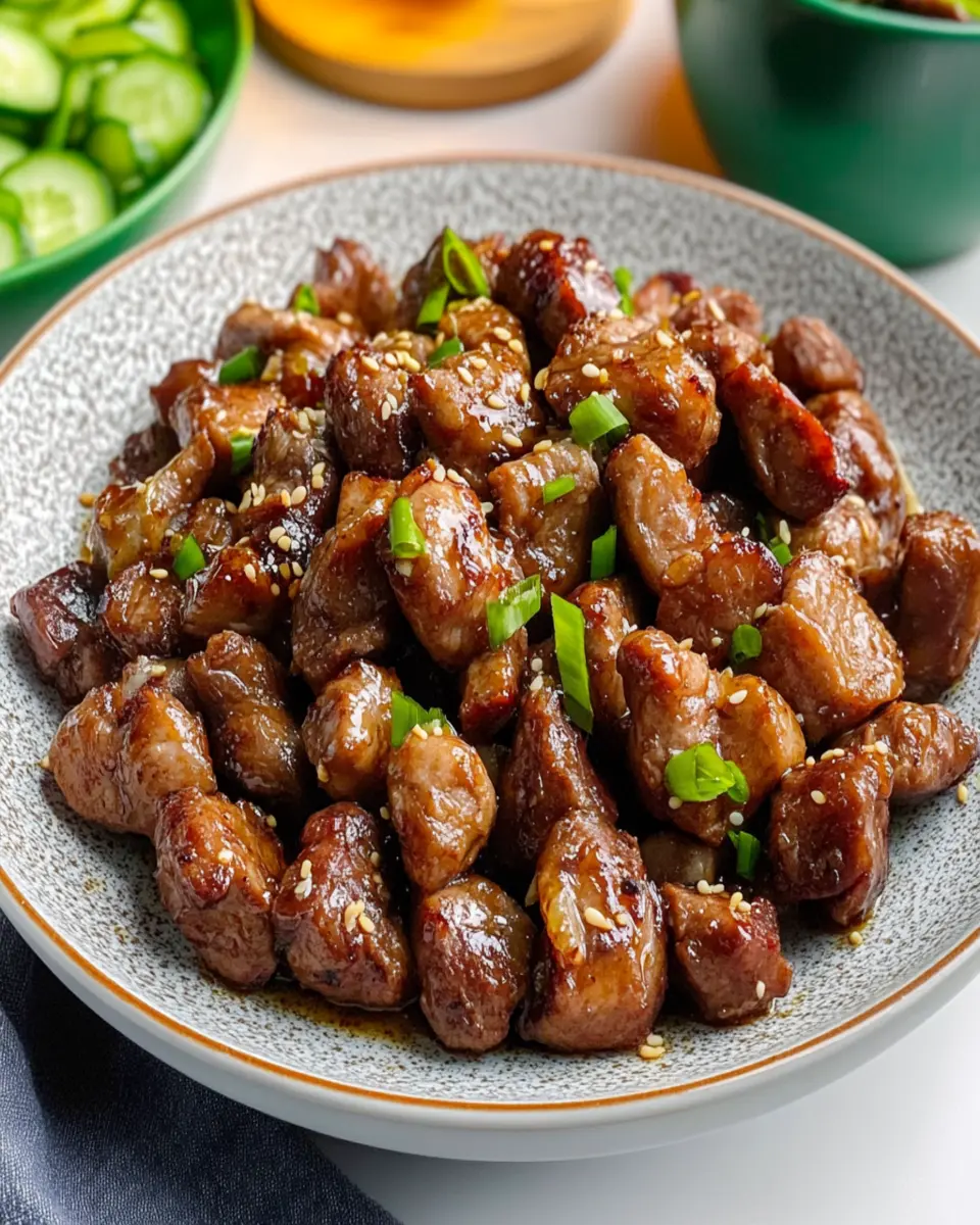 Used as a garnish, green onions provide a fresh, crisp contrast to the rich glaze, adding both color and a hint of sharpness to each serving.