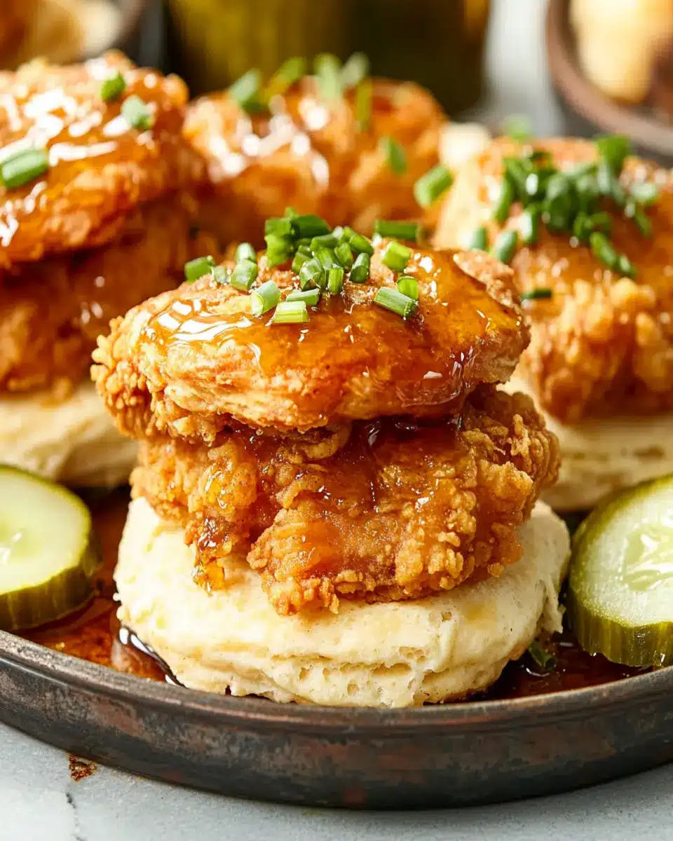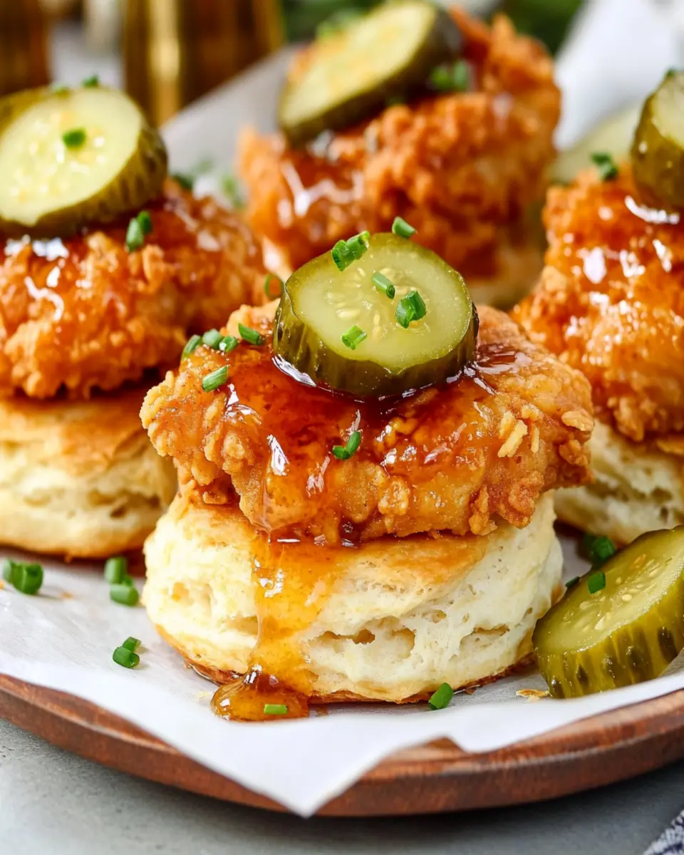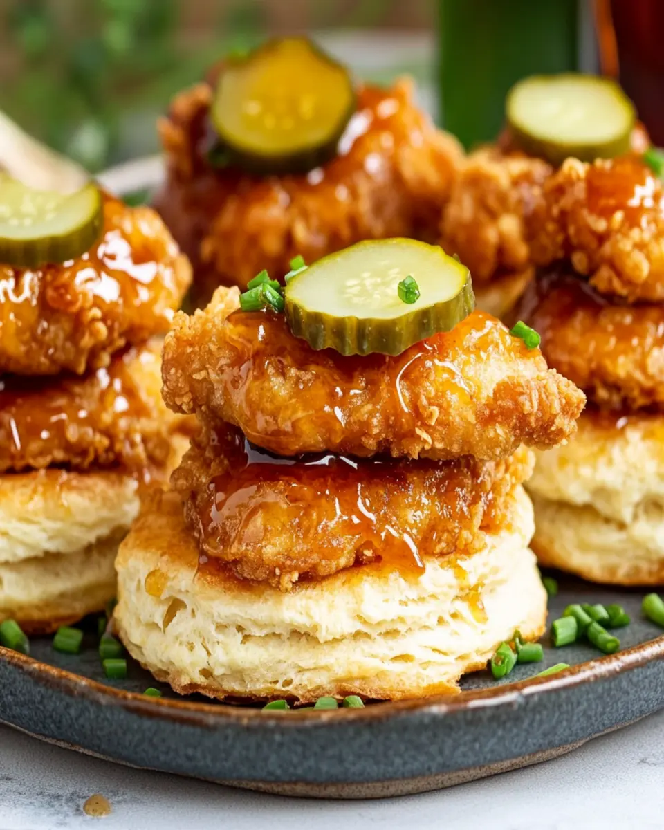 Delicious hot honey chicken biscuits with a sweet and spicy twist.