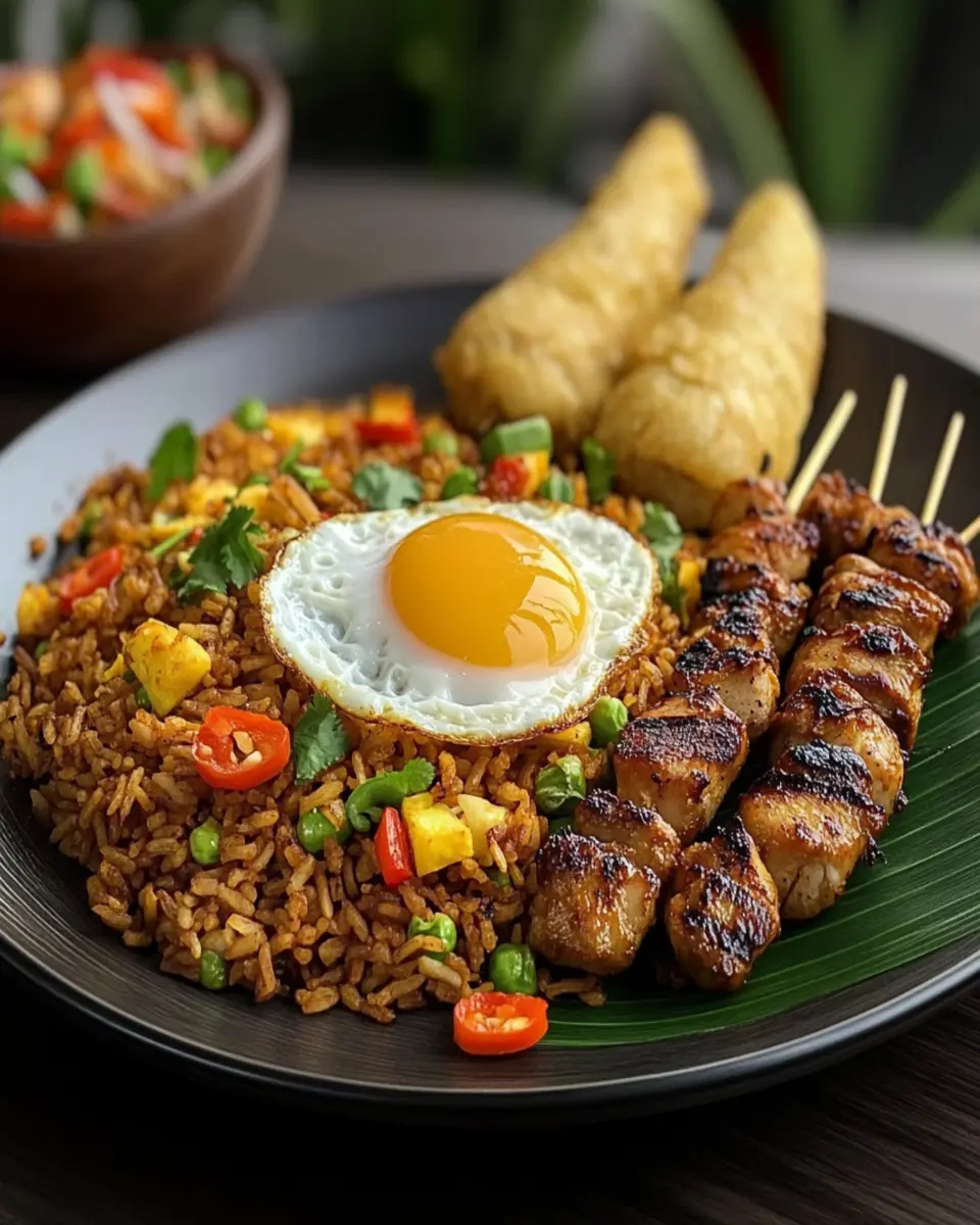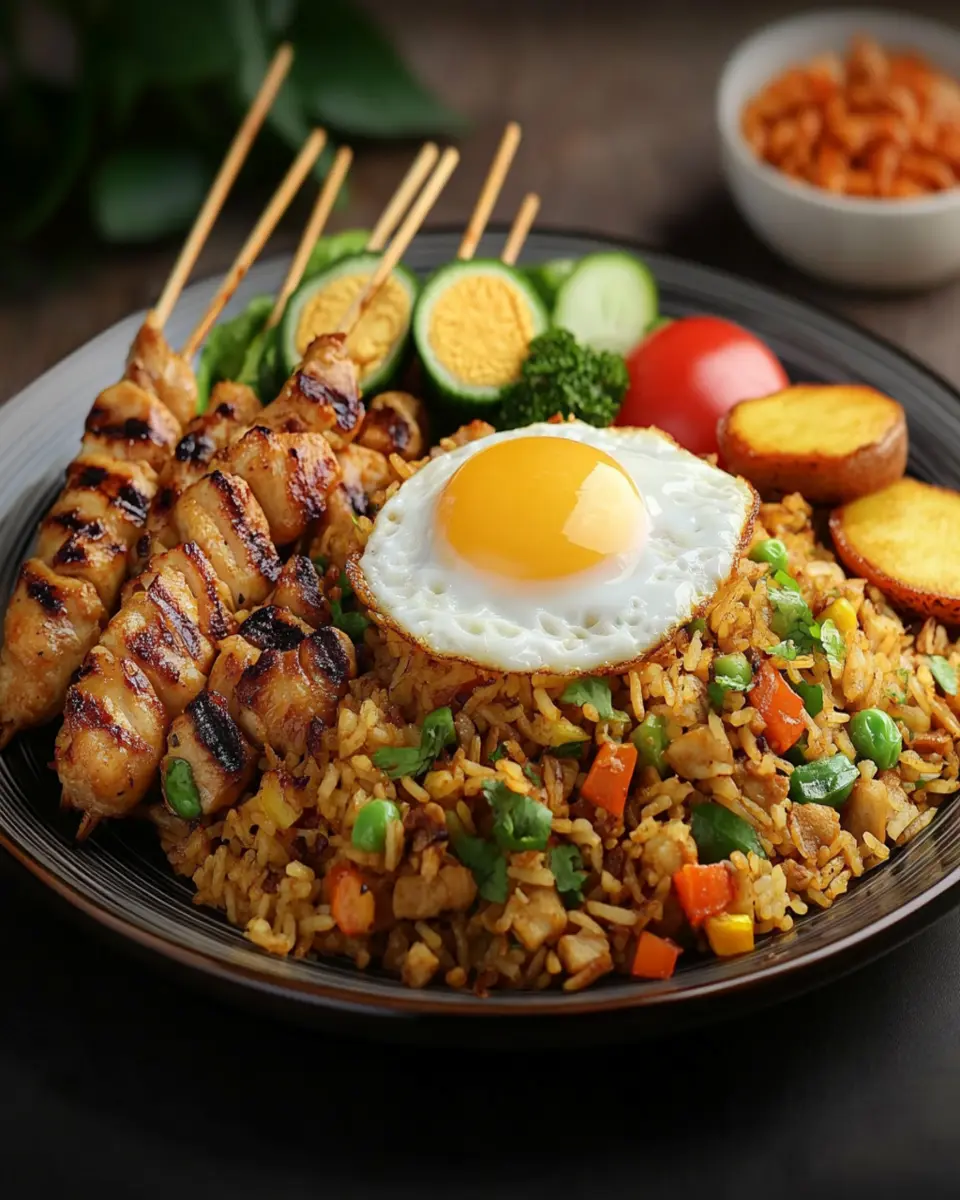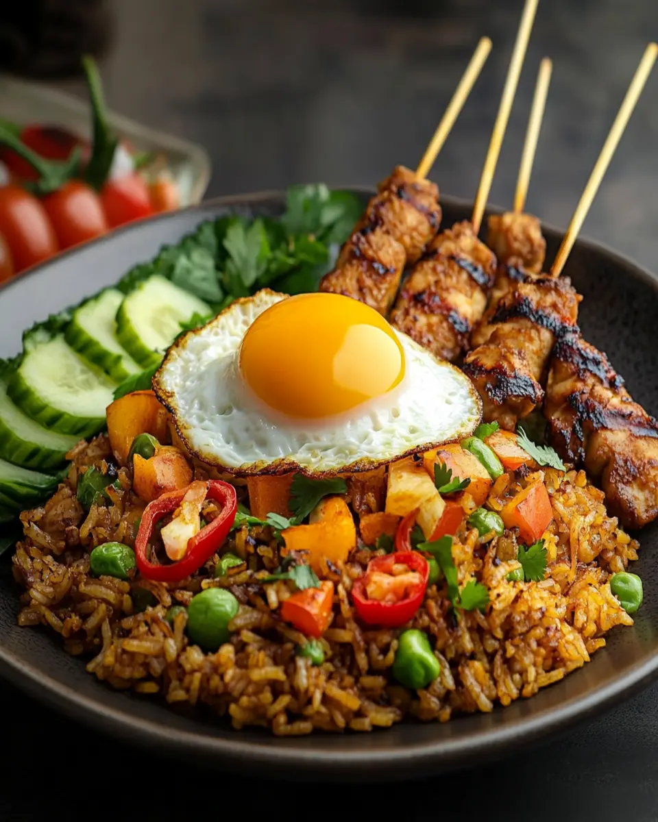 Indonesian Fried Rice with Grilled Skewers is not just a meal; it’s an experience that combines vibrant flavors and textures, making it an instant favorite. With its quick preparation time, this dish is perfect for young professionals who want a satisfying homemade meal without the hassle of long cooking times. The combination of fluffy jasmine rice, colorful mixed vegetables, and the smoky taste of grilled skewers creates a symphony of flavors that will tantalize your taste buds.