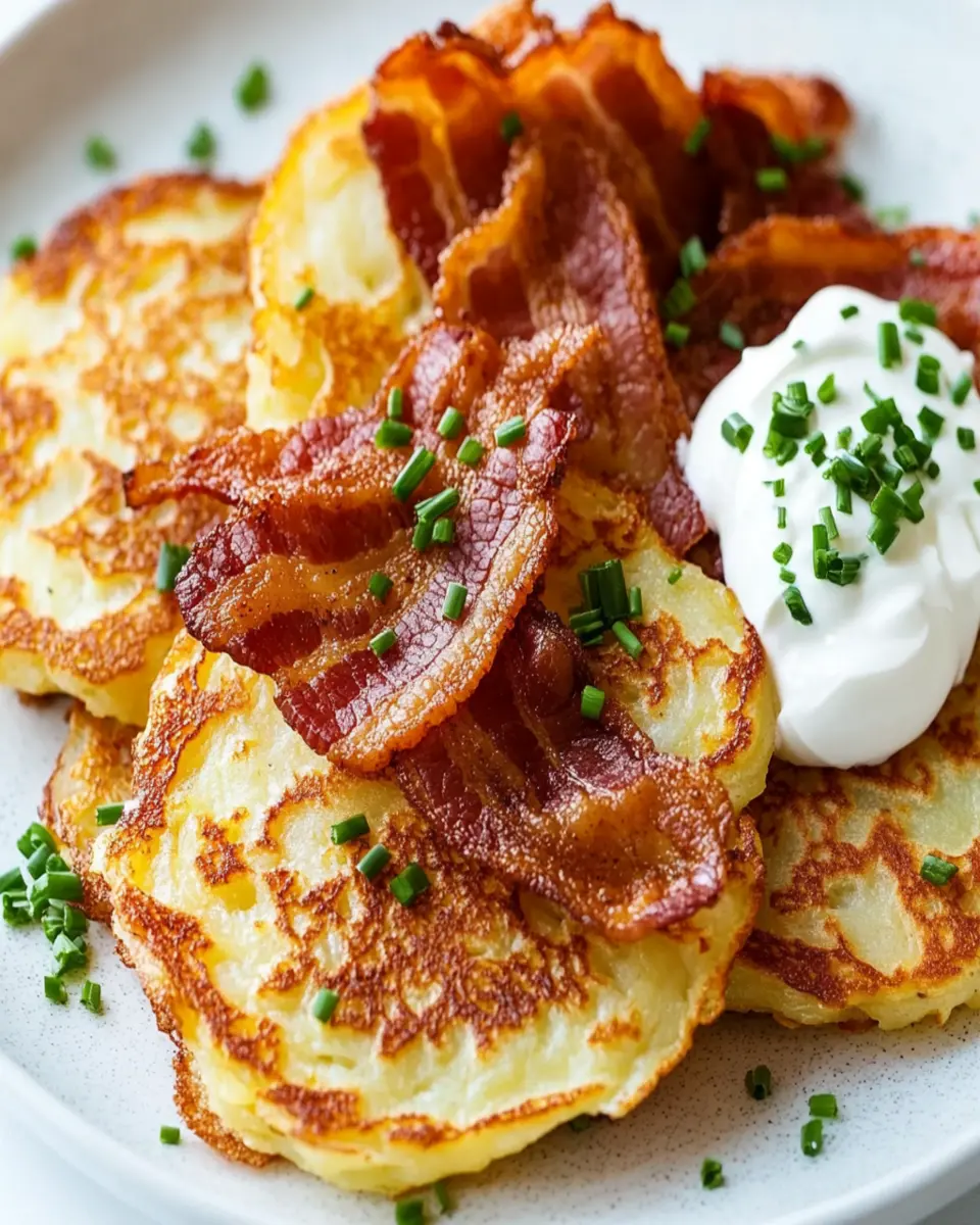 Delicious Irish potato pancakes enriched with crispy bacon, perfect for breakfast or as a savory snack.