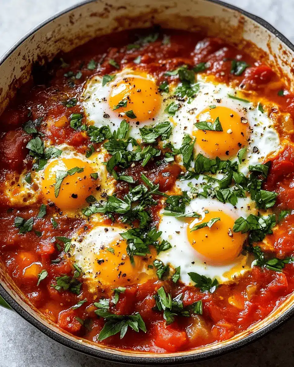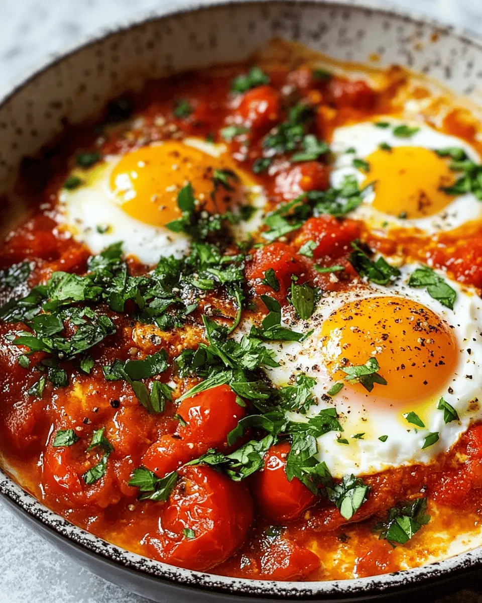 For an extra layer of flavor, crumble some feta cheese on top before serving. The creamy, tangy cheese pairs beautifully with the savory tomato sauce and eggs, adding a delightful creaminess that complements the dish.