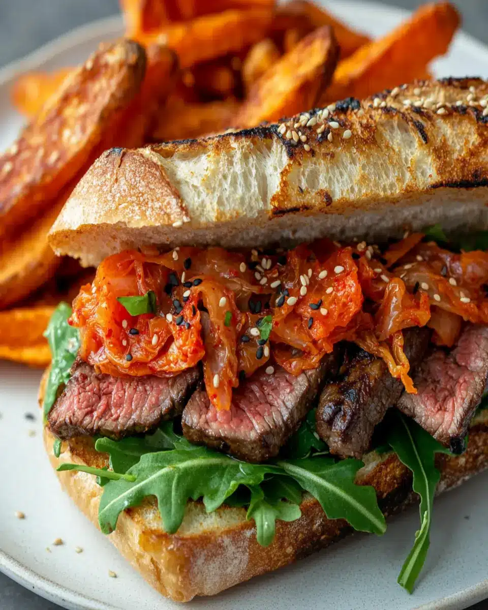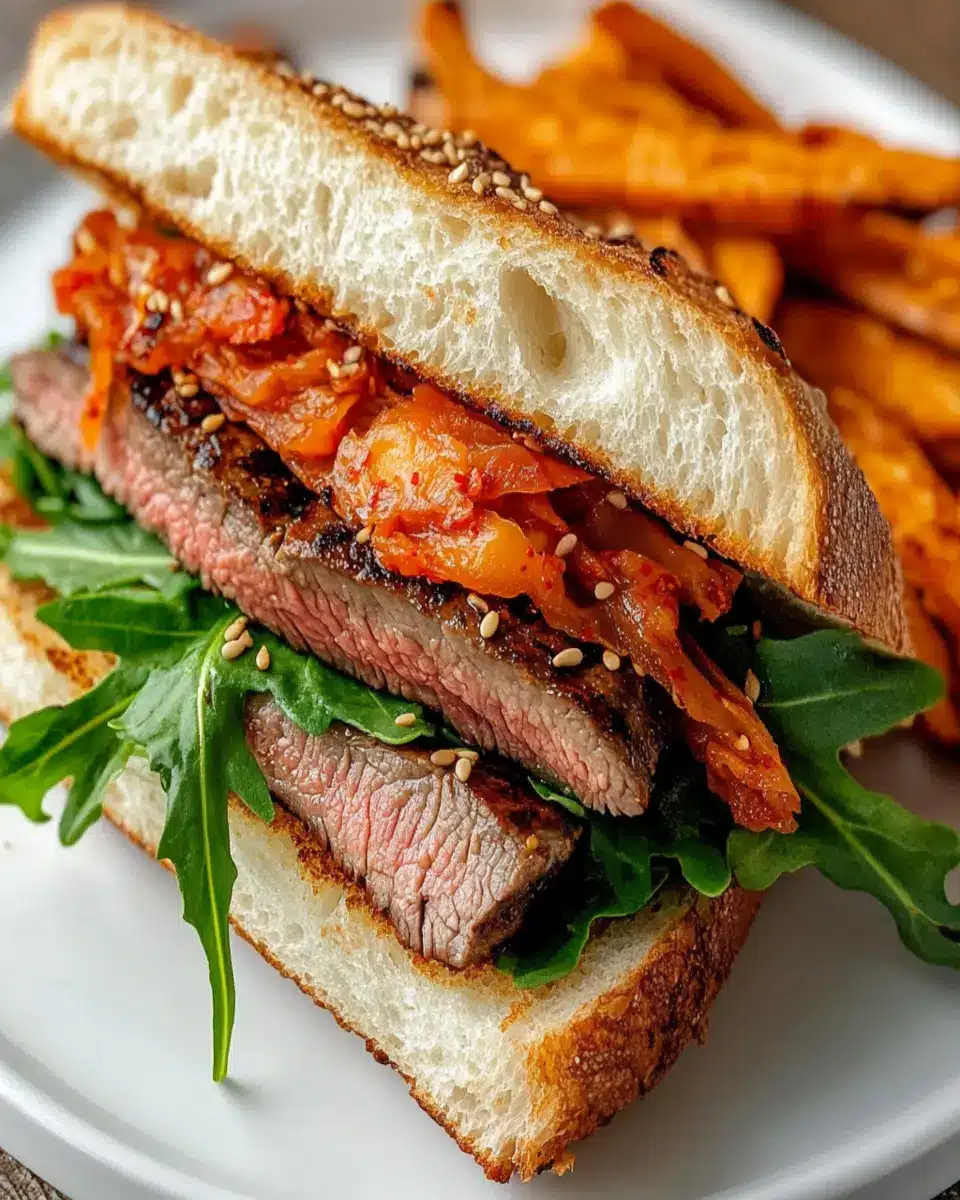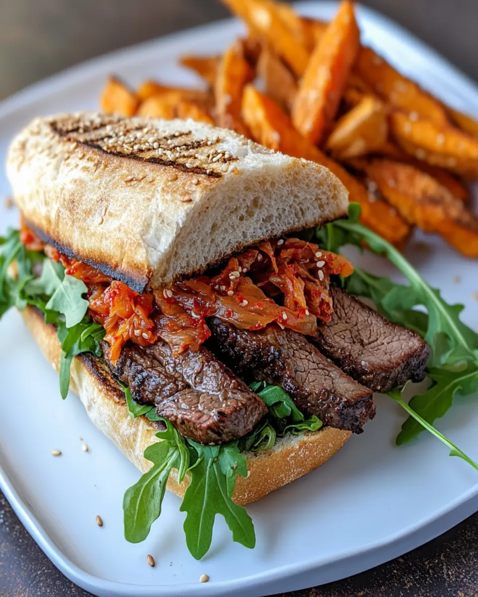 As you prepare this delightful sandwich, consider how it offers a chance to connect with your culinary creativity. Whether you’re grilling for yourself or hosting friends, each bite reflects the love and care you put into your cooking. The combination of marinated beef, fresh vegetables, and the unique taste of kimchi ensures that this sandwich is both satisfying and nourishing.