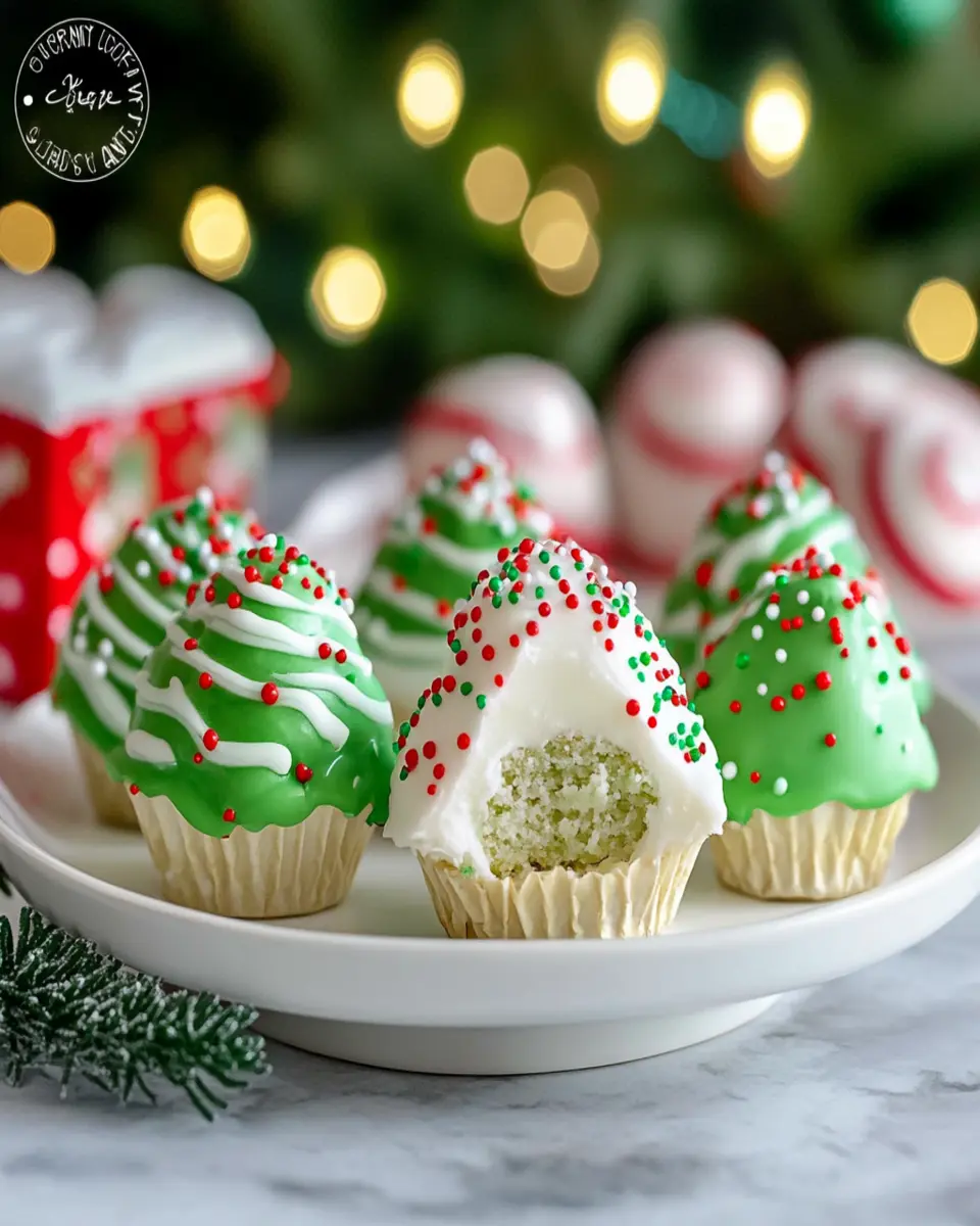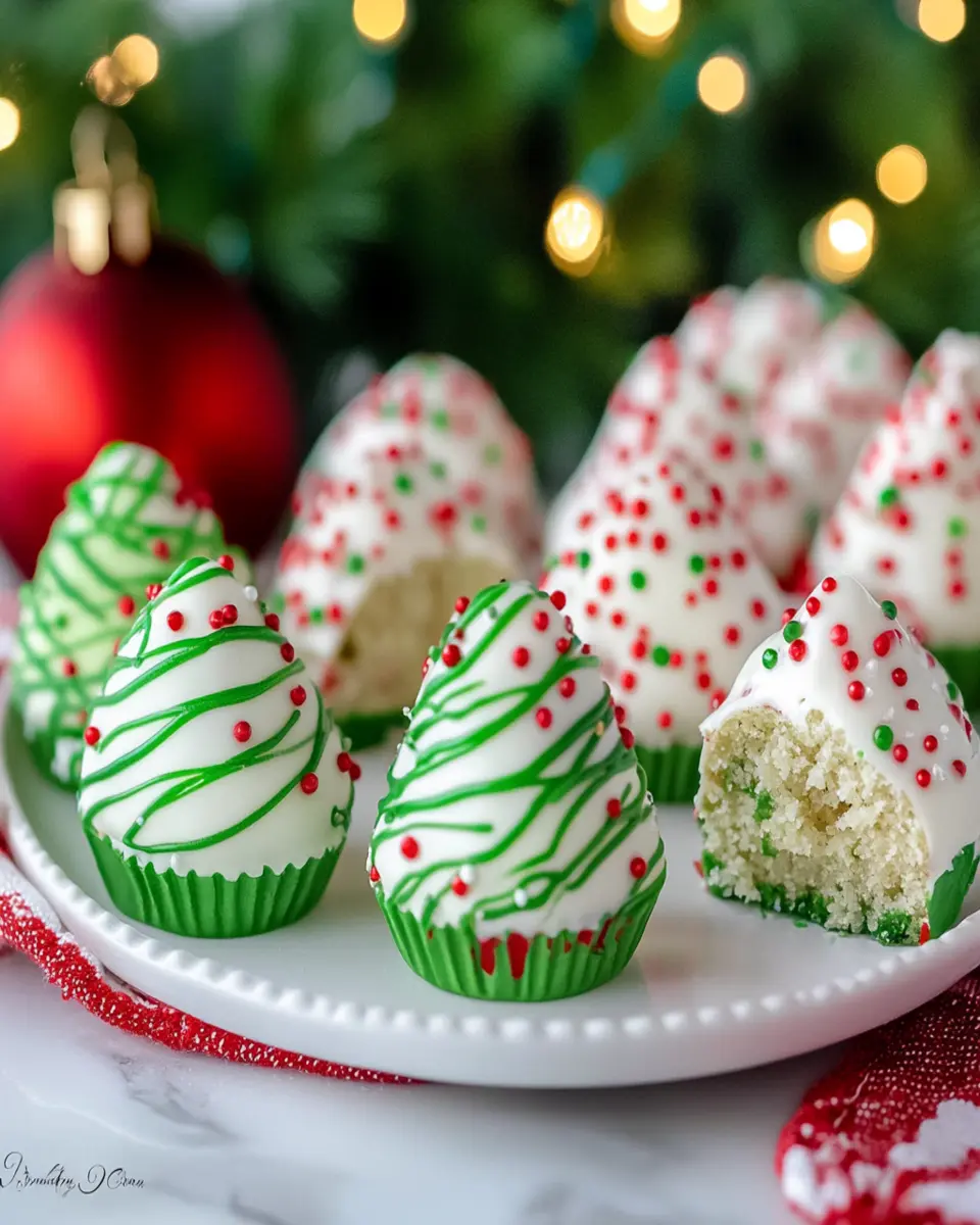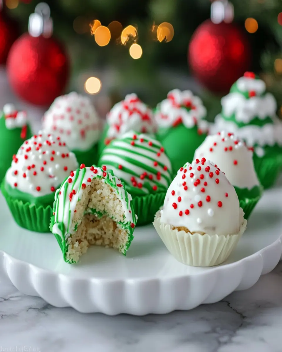 Delicious truffles inspired by Little Debbie Christmas Tree Cakes, perfect for the holiday season.