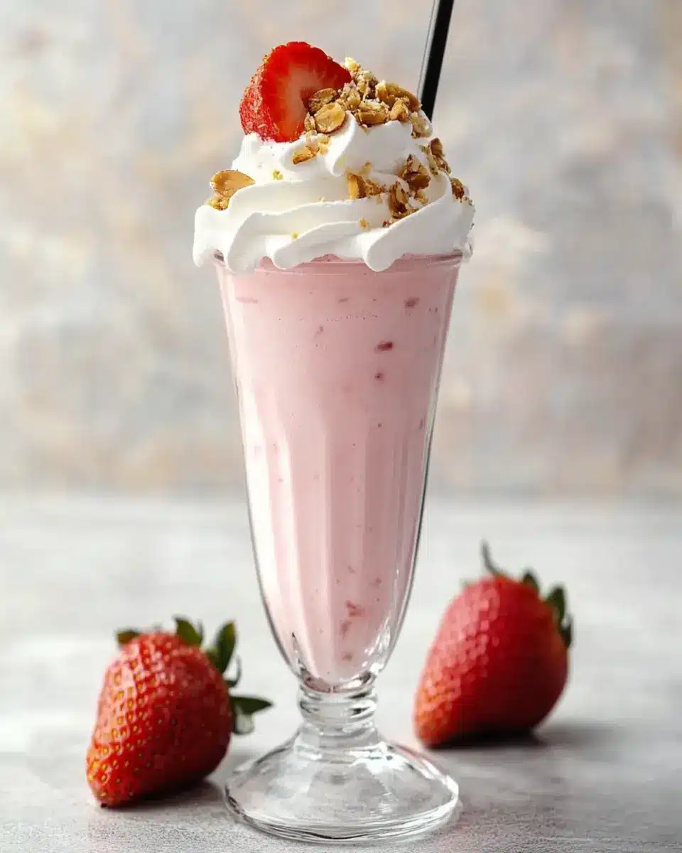To elevate the presentation of your milkshake, top it with a dollop of whipped cream and a few fresh strawberry slices. For an added crunch, sprinkle some chopped nuts or a dusting of unsweetened cocoa powder on top. These garnishes not only make your milkshake visually appealing but also add interesting textures that enhance the overall experience.