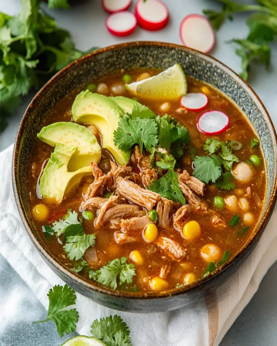 The combination of tender pork, nutritious hominy, and vibrant vegetables creates a meal that is both satisfying and nourishing. Whether you enjoy it on a chilly evening or serve it at a gathering, this soup is sure to impress. Don’t forget that you can customize the spice level to suit your taste preferences, making it a versatile option for any palate.