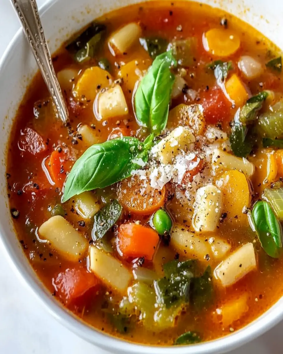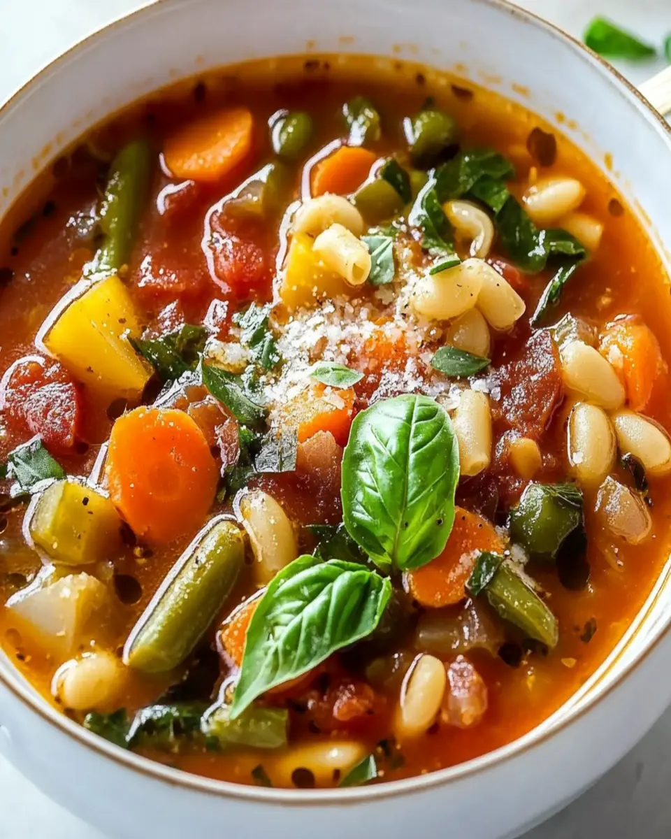 Minestrone soup is a delightful blend of seasonal vegetables and beans, making it a versatile and nutritious dish suitable for any occasion. With its customizable nature, you can adapt the recipe to fit your preferences or the ingredients you have on hand. Whether enjoyed as a quick weeknight meal or a comforting dish for gatherings, minestrone soup is sure to please. Don’t hesitate to cook, save, or share this recipe with friends and family, as it’s a wonderful way to bring warmth and flavor to the table!