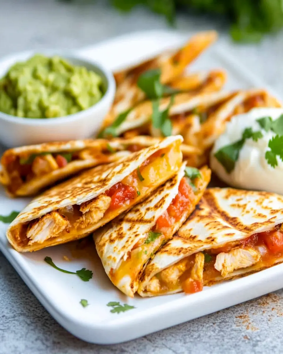 Serve your Mini Chicken Quesadillas with a side of salsa, sour cream, or guacamole for dipping. These accompaniments not only enhance the flavor but also add a refreshing element to the dish. Plus, they make for a more complete meal that’s perfect for sharing with friends or family.