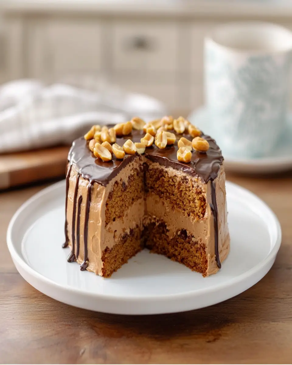 You can also pair the cake with fresh berries like raspberries or strawberries. Their natural tartness balances the sweetness of the cake, creating a delightful contrast that elevates each bite. A sprinkle of chopped nuts on top not only adds a lovely crunch but also enhances the nutty flavor profile of the peanut butter.