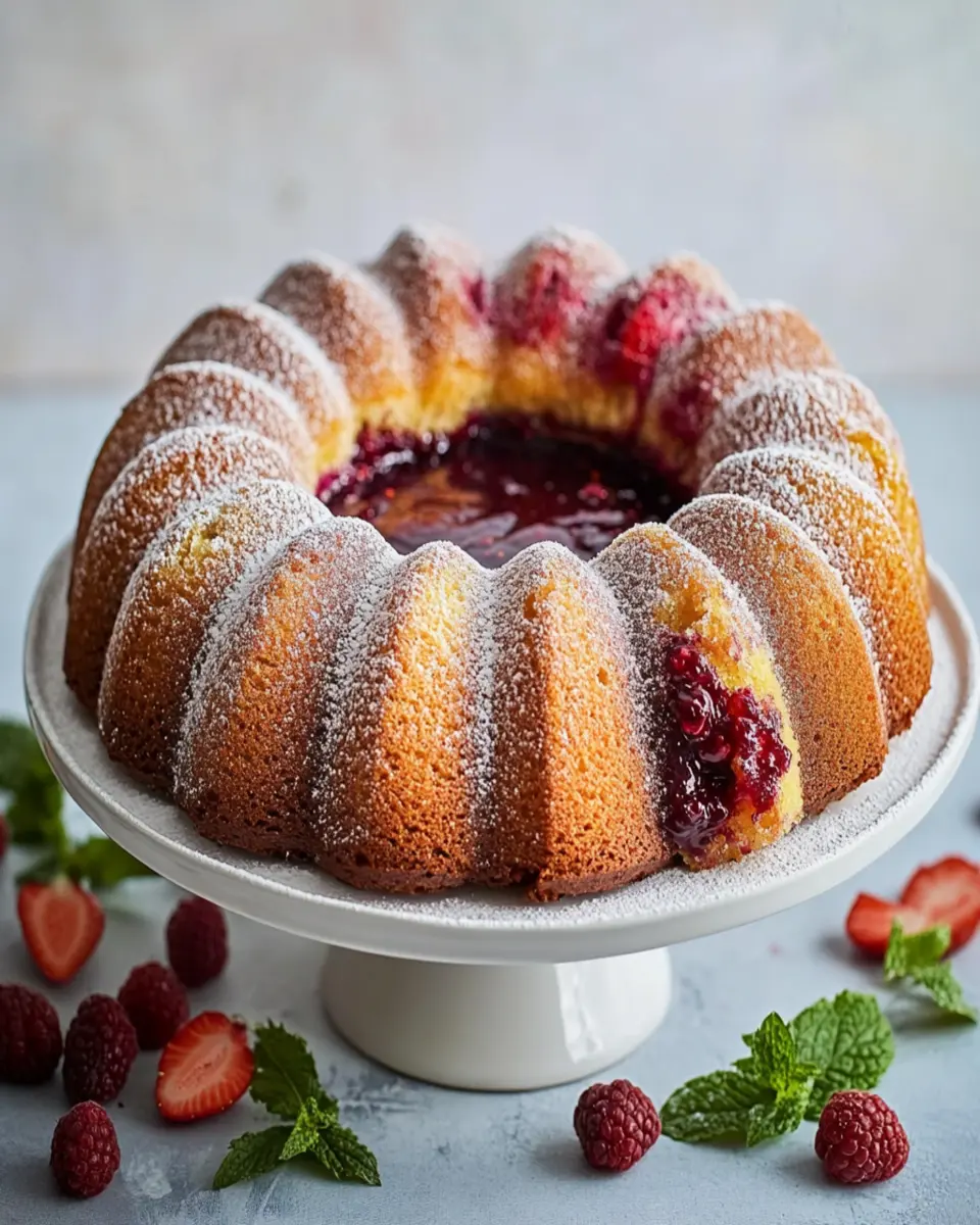 For an even more delightful experience, consider serving the cake warm, dusted with powdered sugar. This simple touch elevates the presentation and enhances the sweetness, making it a perfect treat for gatherings or cozy evenings at home. Remember, you can customize the jam filling based on your preference, whether you opt for tart raspberry or sweet strawberry; the choice is yours!