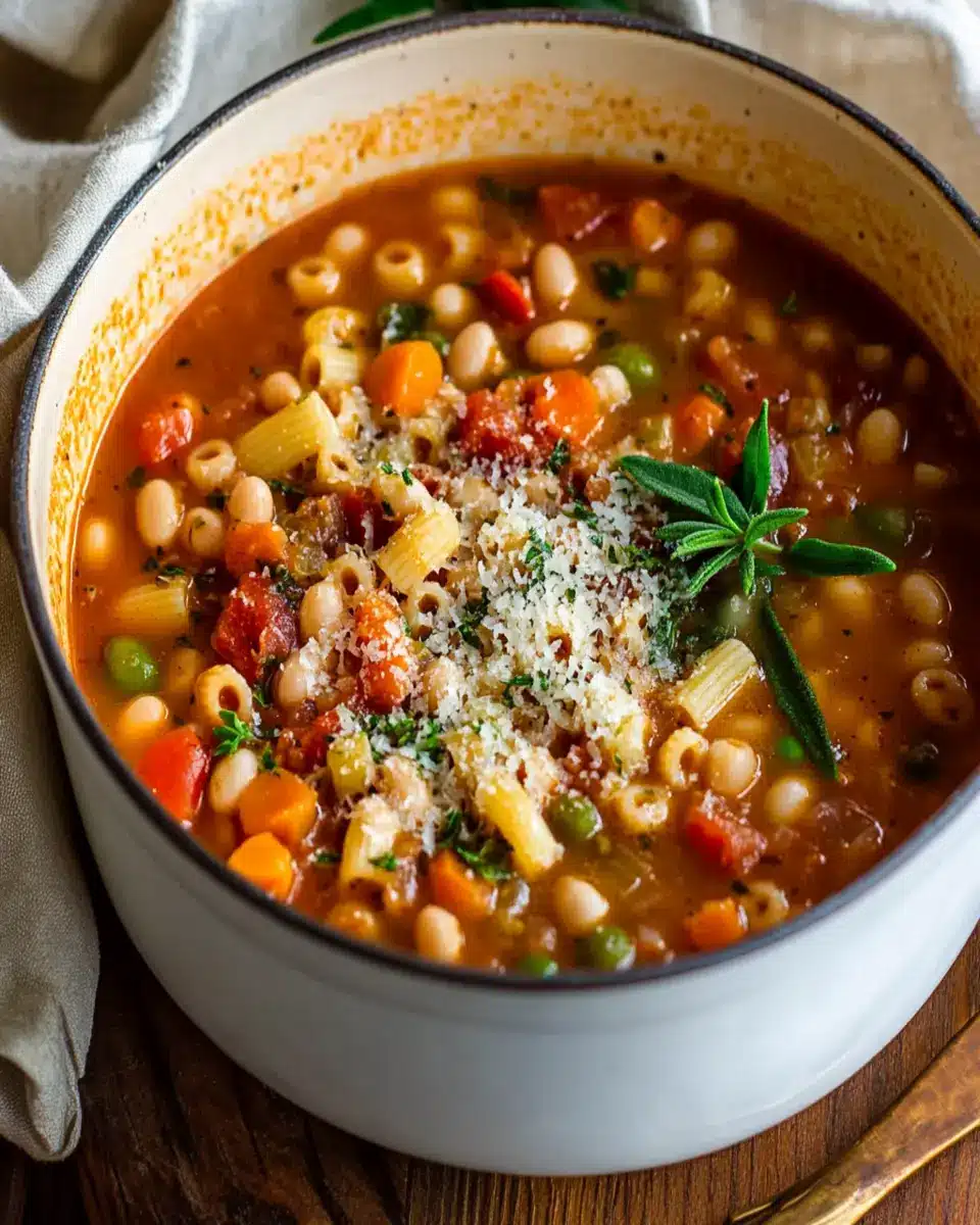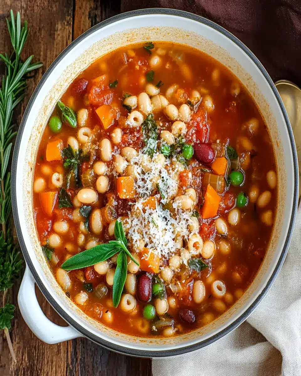 A hearty Italian soup made with pasta, beans, and vegetables.