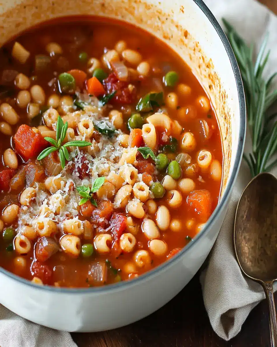 Pasta Fagioli Soup is a traditional Italian dish made with pasta, beans, and an array of vegetables. It’s known for its hearty texture and rich flavors, making it a comforting meal option.