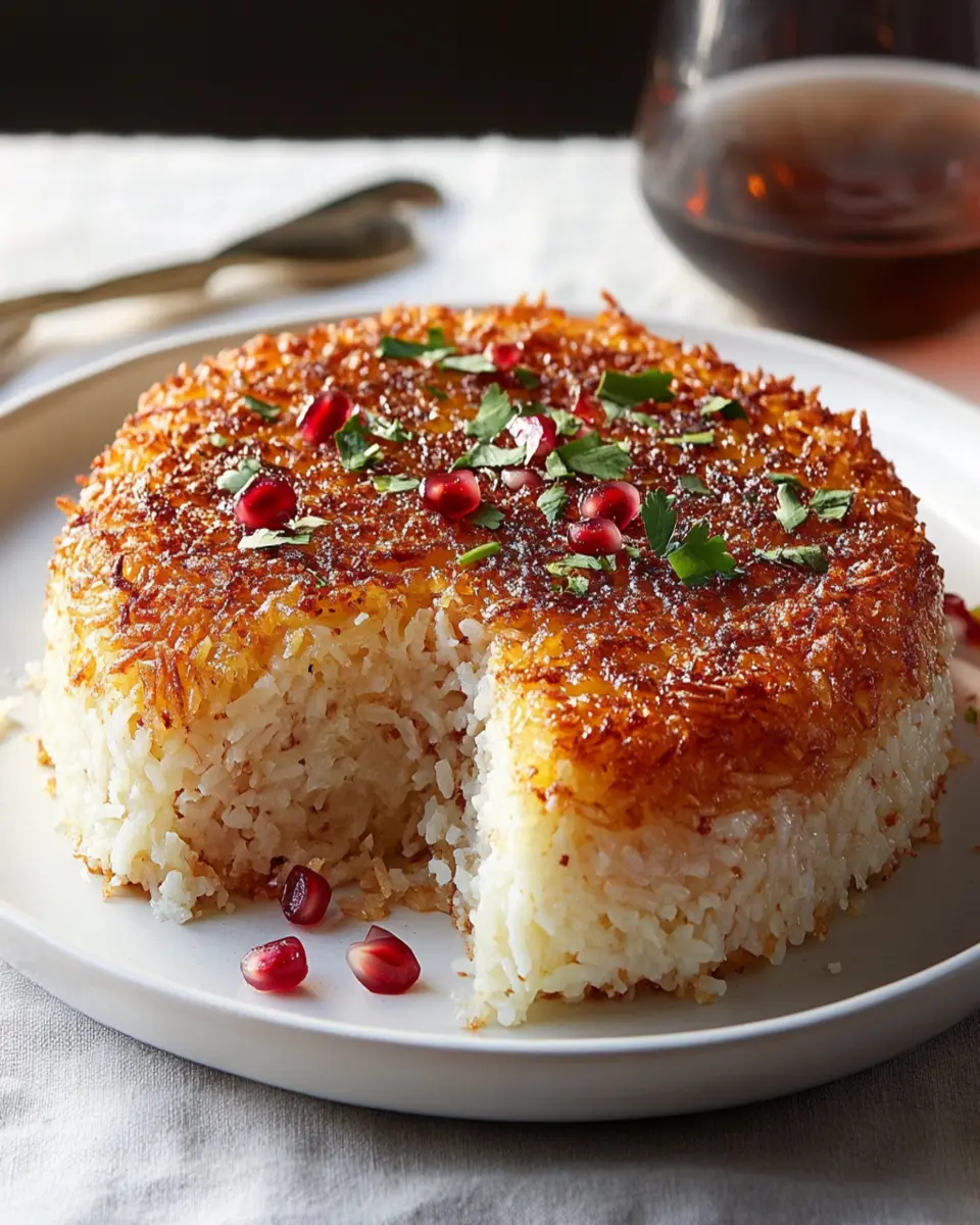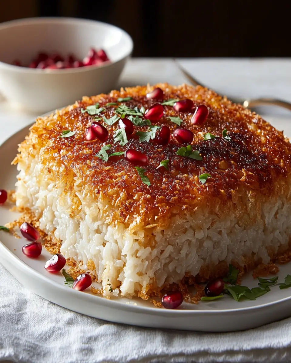 A delicious Persian dish featuring crispy rice and a golden crust.