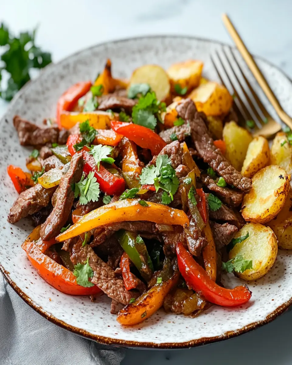 Peruvian Stir-Fried Beef with Fried Potatoes is a vibrant dish that encapsulates the rich culinary heritage of Peru. This delightful meal features tender strips of marinated beef, perfectly stir-fried with a medley of colorful vegetables, and is served alongside golden, crispy fried potatoes. It’s not just a meal; it’s an experience that brings the warmth of Peruvian home cooking to your table.