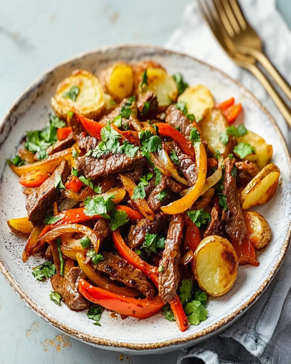 Peruvian Stir-Fried Beef with Fried Potatoes is a delightful dish that brings the vibrant flavors of Peru to your table. With its tender marinated beef, colorful vegetables, and crispy fried potatoes, this meal is not only satisfying but also easy to prepare, making it perfect for young professionals and homemade-food lovers alike.