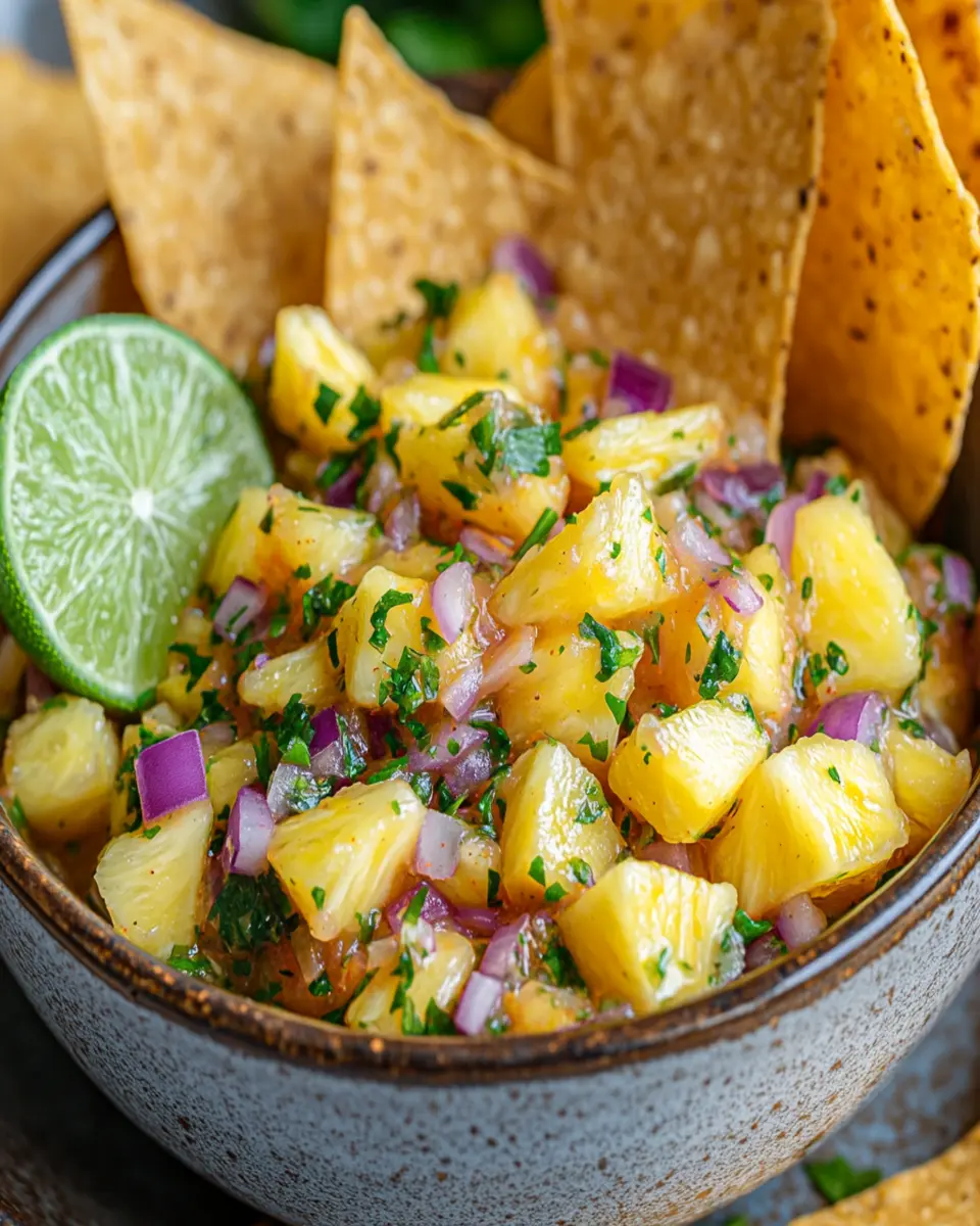 This salsa also works beautifully as a topping for grilled meats, such as chicken, fish, or pork. The acidity from the lime juice and the sweetness of the pineapple help to balance the rich flavors of grilled proteins, creating a harmonious dish that’s sure to impress.