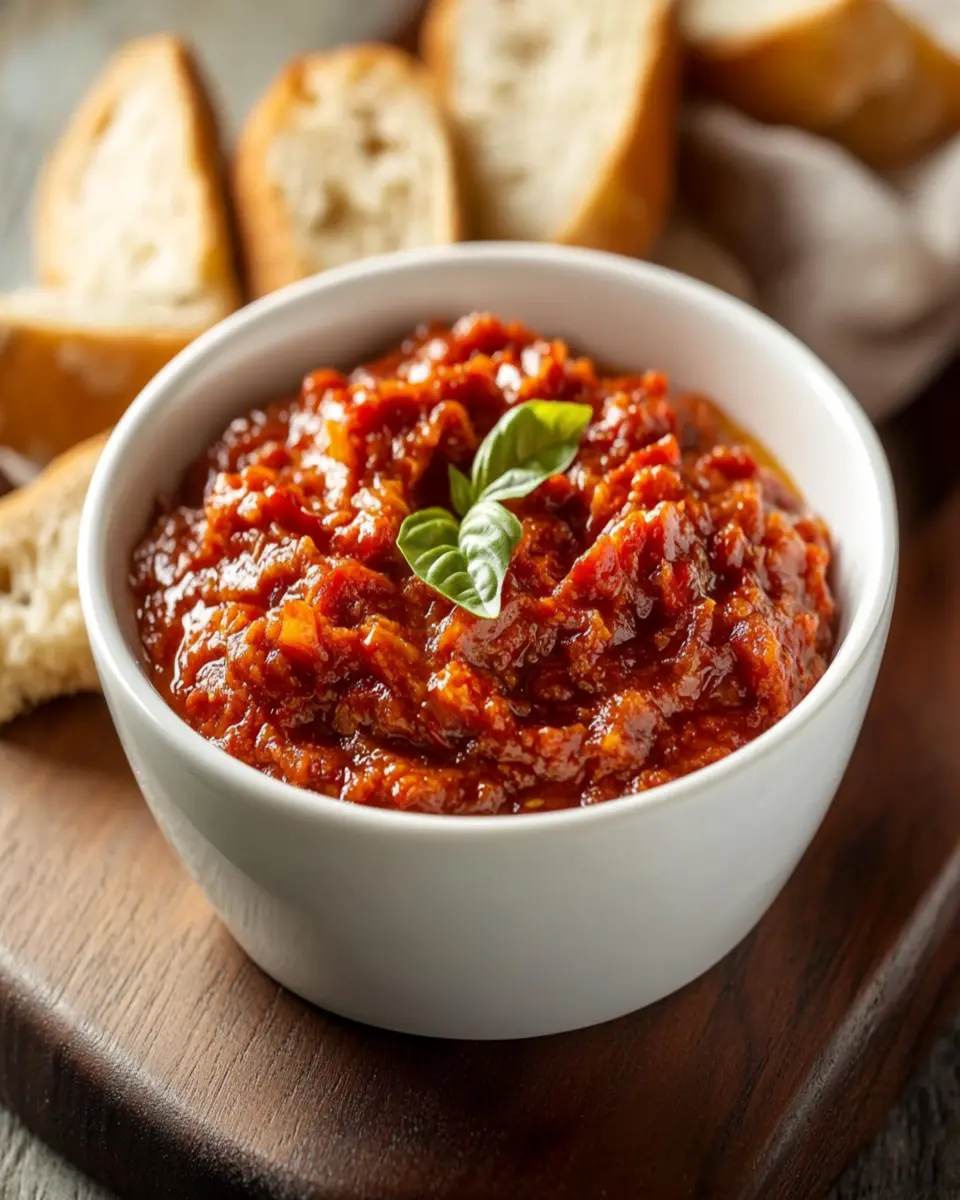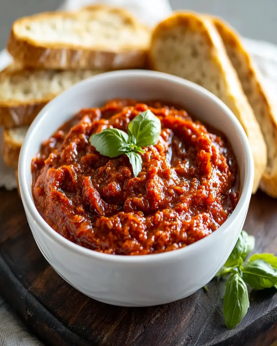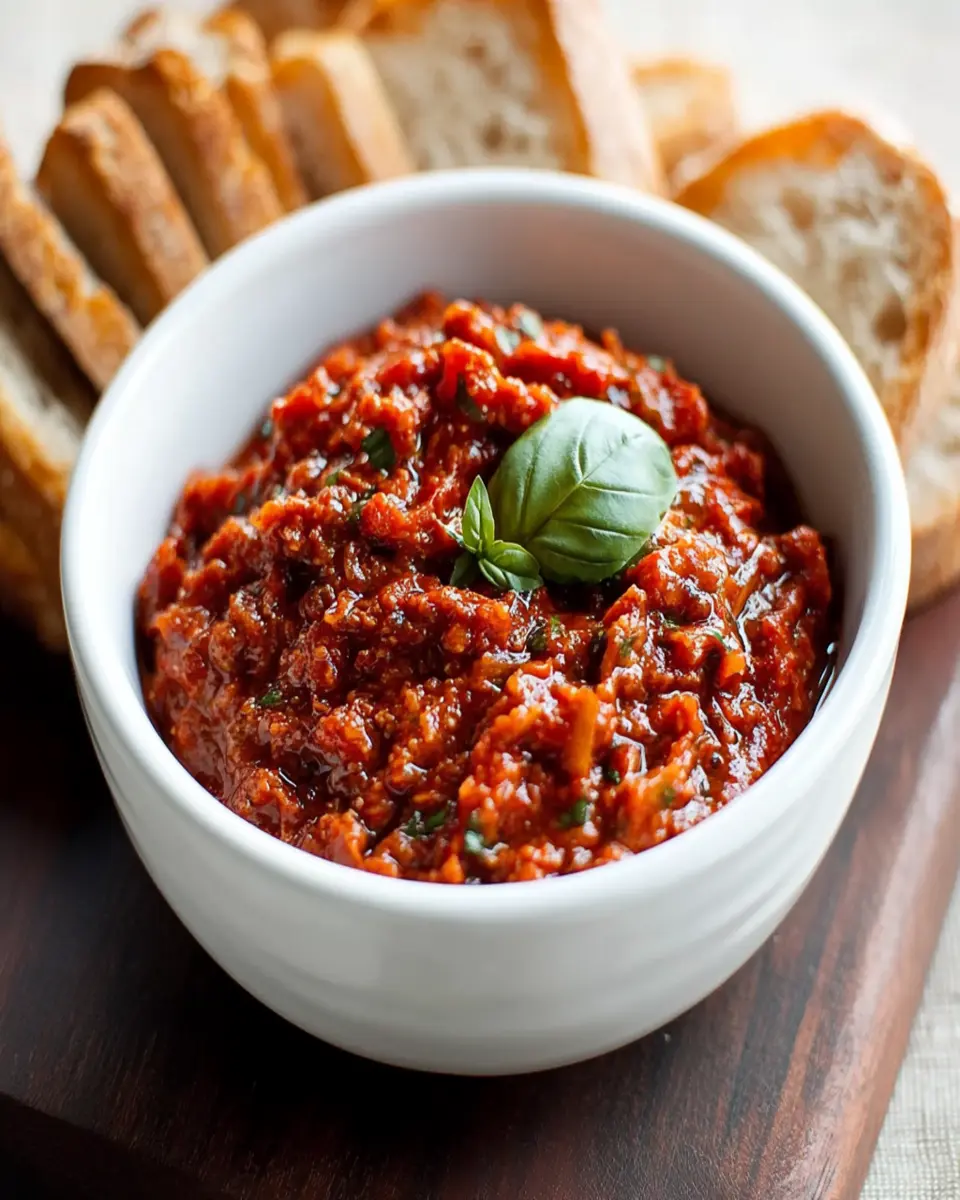 Red Pepper Tapenade can be served in various ways. It pairs wonderfully with crusty bread, as a dip for veggies, or as a spread on sandwiches. It’s also a great addition to charcuterie boards, adding vibrant color and flavor.