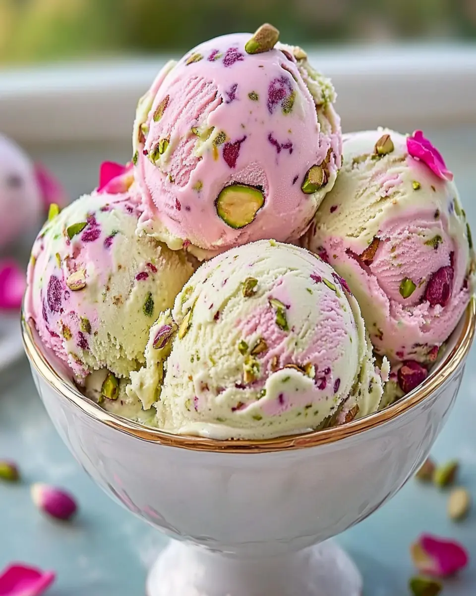 This recipe is perfect for homemade food lovers who appreciate the artistry of crafting their own desserts. It’s an excellent choice for young professionals looking to impress friends at gatherings or simply to enjoy a sweet treat after a long day. The combination of rosewater and crushed pistachios offers a unique flavor profile that sets it apart from traditional ice creams.