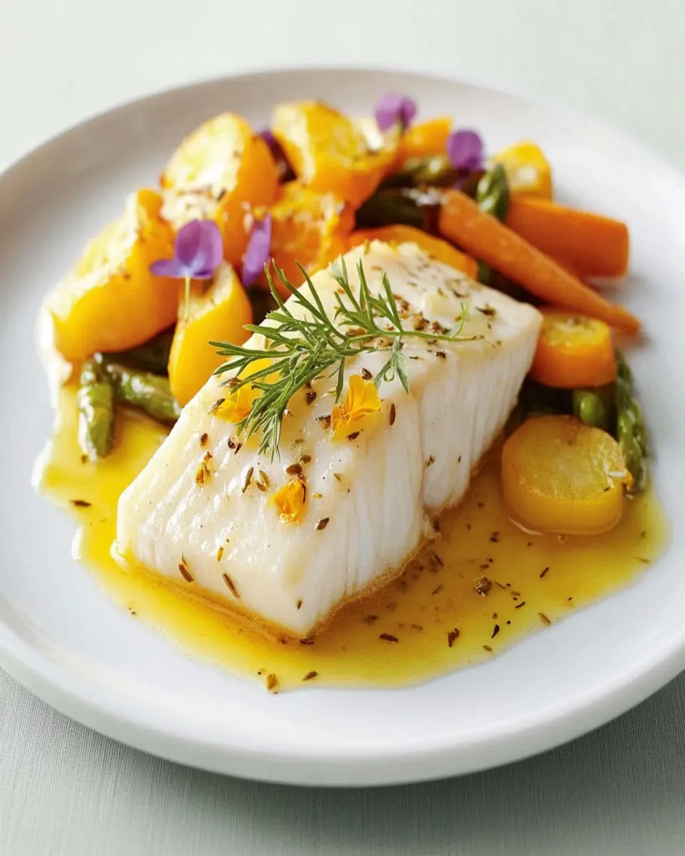Saffron Tallow Poached Halibut pairs beautifully with fresh salads or steamed vegetables. Consider a light vinaigrette or a squeeze of lemon to enhance the dish’s flavors.