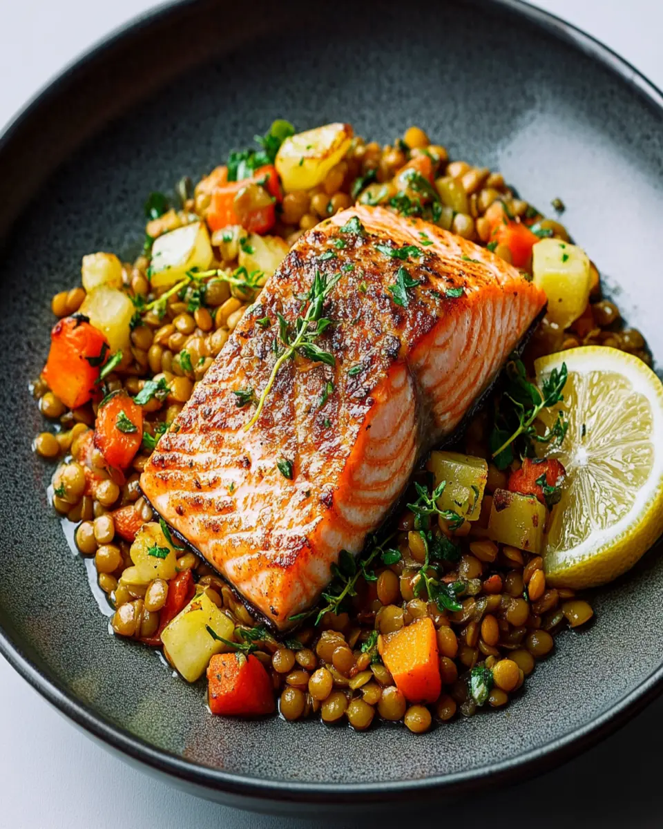Packed with protein and omega-3 fatty acids, salmon is a powerhouse of nutrition, while lentils add fiber and essential nutrients. This dish is not only delicious but also supports a balanced diet. You’ll feel good about serving it to yourself or your loved ones.